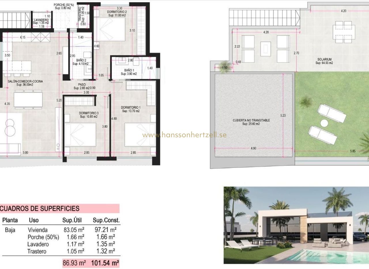 VILLAS NEUVES À CONDADO DE ALHAMA GOLF COURSE Nouveau complexe résidentiel de villas à Condado de Alhama Golf Resort. Villas avec 3 chambres, 2 salles de bains, cuisine ouverte sur le salon, placards, terrasse, solarium privé et place de parking dans le jardin. Toutes les villas comprennent une piscine privée de 21 m2. INCLUS dans le prix : - PLACE DE STATIONNEMENT ALLOUÉE dans le jardin privé. - SOLARIUM avec escalier extérieur. - SALLES DE BAIN : les parois de douche, les meubles-lavabos, les miroirs et l'éclairage LED encastré dans le faux-plafond. - CUISINE : la hotte aspirante, l'éclairage LED encastré dans le plafond. - Climatisation pré-installée. - Les armoires encastrées sont doublées. - STORES ÉLECTRIQUES. - Système AEROTHERMIA. - Installation d'un adoucisseur d'eau. - POINT DE CHARGE pour VEHICULES ELECTRIQUES & HYBRIDES. - PISCINE PRIVÉE. Située dans le complexe golfique privé de Condado de Alhama, entre Alhama de Murcia et Mazarrón. Condado de Alhama Golf Resort est un fantastique complexe de golf avec de nombreux équipements et services. Un centre commercial, un centre sportif, une variété de bars et de restaurants, des supermarchés et plus de 25 piscines et jardins communs. Condado de Alhama Golf Resort possède son propre terrain de golf conçu par Jack Nicklaus et se trouve à seulement 15 minutes des belles plages de Bolnuevo et de Mazarron. Mazarron possède plus de 35 km de côtes, dont une grande partie est préservée. De nombreuses plages de la baie de Mazarron ont reçu le drapeau bleu pour leur qualité. Le Condado de Alhama Golf Resort se trouve à seulement 20 minutes du nouvel aéroport international de Corvera.