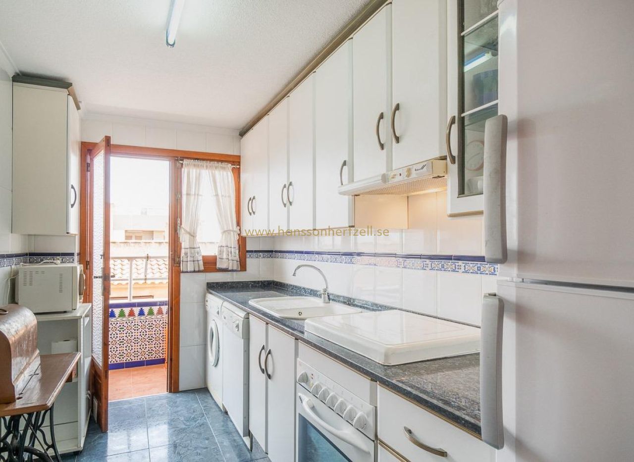 Penthouse exceptionnel de 3 chambres et 2 salles de bains de 101 m² à vendre pour €149.900 à Torrevieja, situé à seulement 150 mètres de Playa de los Náufragos. Dernier étage avec orientation sud, entièrement meublé avec débarras et ascenseur.