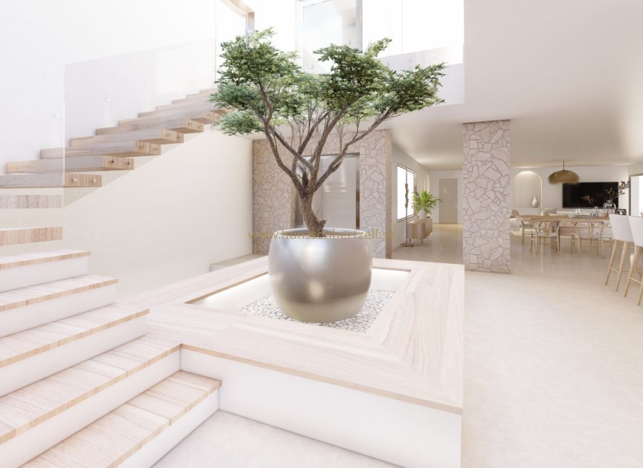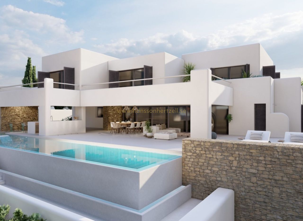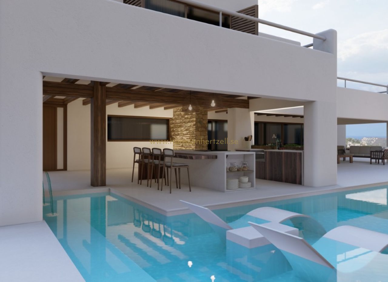 Découvrez cette spectaculaire villa de style Ibiza, actuellement en construction, située dans un endroit unique avec des vues à couper le souffle sur la campagne et la mer. Cette belle propriété est répartie sur trois étages et allie élégance, confort et design contemporain. Cette belle propriété est répartie sur trois étages et allie élégance, confort et design contemporain. En entrant, vous trouverez au rez-de-chaussée un garage spacieux pouvant accueillir plusieurs voitures, offrant la sécurité et l'espace dont une famille moderne a besoin. Au premier étage, vous êtes accueilli par un salon spacieux qui s'harmonise avec la salle à manger, créant ainsi un environnement parfait pour la convivialité et les réceptions. La cuisine moderne, entièrement équipée avec les meilleurs appareils, est un rêve pour les gourmets. En outre, vous trouverez à cet étage des toilettes pour les invités et une buanderie pratique. La conception comprend également une chambre double spacieuse avec salle de bains attenante, offrant intimité et confort aux résidents. À l'étage supérieur, il y a trois chambres doubles spacieuses, chacune avec son propre dressing et sa salle de bains attenante, garantissant un luxe et un confort inégalés pour tous les résidents. L'extérieur de la villa est tout aussi impressionnant, avec une belle et spacieuse terrasse partiellement couverte et une piscine. Ne manquez pas la chance de vivre dans cette villa unique, où le style d'Ibiza et le confort moderne s'unissent pour créer la maison parfaite.