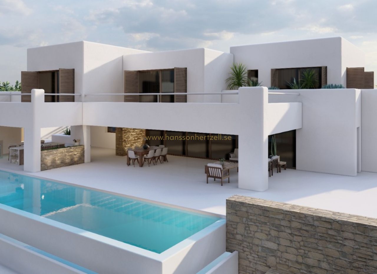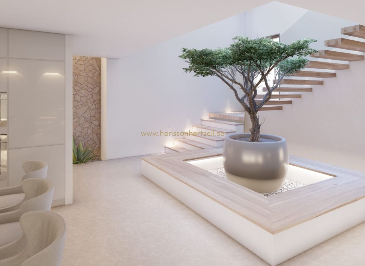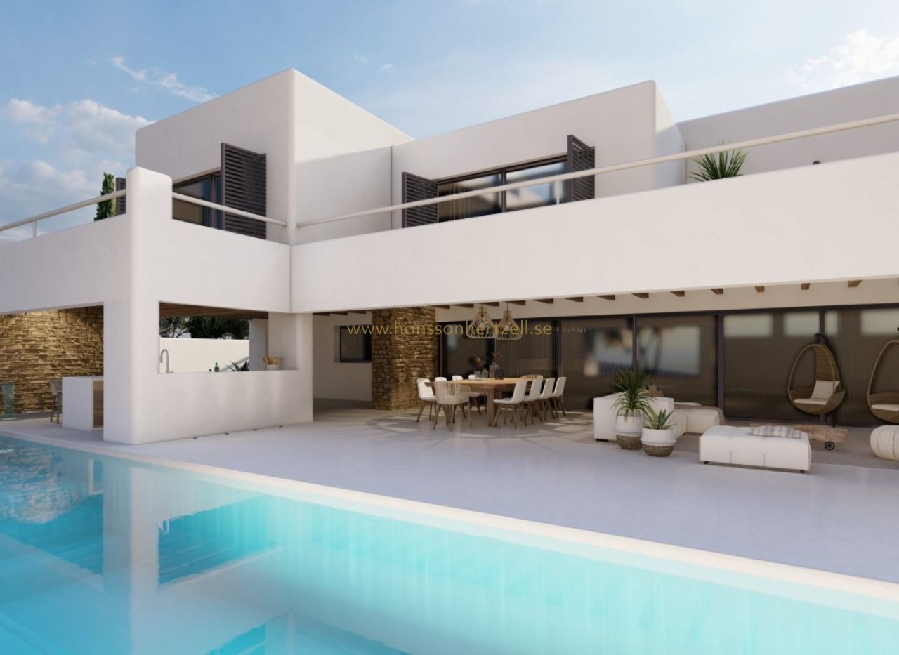 Découvrez cette spectaculaire villa de style Ibiza, actuellement en construction, située dans un endroit unique avec des vues à couper le souffle sur la campagne et la mer. Cette belle propriété est répartie sur trois étages et allie élégance, confort et design contemporain. Cette belle propriété est répartie sur trois étages et allie élégance, confort et design contemporain. En entrant, vous trouverez au rez-de-chaussée un garage spacieux pouvant accueillir plusieurs voitures, offrant la sécurité et l'espace dont une famille moderne a besoin. Au premier étage, vous êtes accueilli par un salon spacieux qui s'harmonise avec la salle à manger, créant ainsi un environnement parfait pour la convivialité et les réceptions. La cuisine moderne, entièrement équipée avec les meilleurs appareils, est un rêve pour les gourmets. En outre, vous trouverez à cet étage des toilettes pour les invités et une buanderie pratique. La conception comprend également une chambre double spacieuse avec salle de bains attenante, offrant intimité et confort aux résidents. À l'étage supérieur, il y a trois chambres doubles spacieuses, chacune avec son propre dressing et sa salle de bains attenante, garantissant un luxe et un confort inégalés pour tous les résidents. L'extérieur de la villa est tout aussi impressionnant, avec une belle et spacieuse terrasse partiellement couverte et une piscine. Ne manquez pas la chance de vivre dans cette villa unique, où le style d'Ibiza et le confort moderne s'unissent pour créer la maison parfaite.