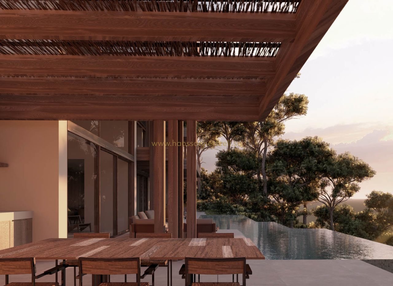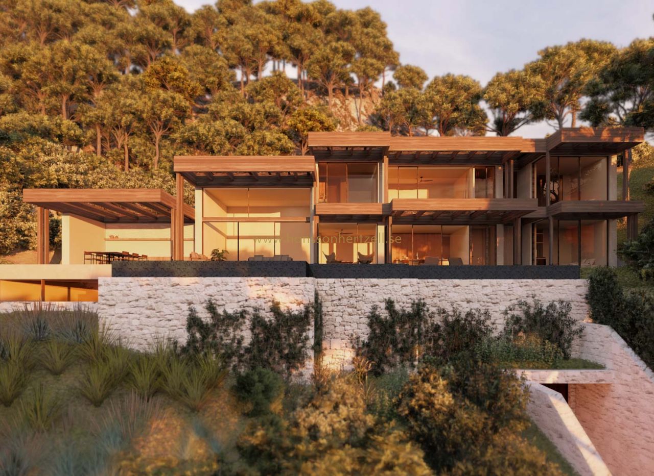 Cette agréable villa au design contemporain offre un style de vie luxueux et confortable dans un cadre privilégié. Située sur un terrain de 1 573 m², cette propriété dispose d'un total de 770,10 m² de surface construite, y compris de spacieuses terrasses et vérandas qui maximisent l'expérience du climat méditerranéen. En entrant dans le sous-sol, vous trouverez un garage spacieux qui est facilement accessible depuis la rue. De là, un élégant hall mène à l'escalier intérieur et à l'ascenseur, tous deux reliant les quatre étages de la villa. Le rez-de-chaussée surprend avec un immense espace multifonctionnel rempli de lumière naturelle grâce aux grandes fenêtres. À ce niveau se trouvent une chambre à coucher avec salle de bains attenante, parfaite pour les invités, et des toilettes pour les invités. Le spacieux salon-salle à manger, avec son impressionnante hauteur de plafond, est inondé de lumière méditerranéenne, créant une atmosphère chaleureuse et accueillante. La cuisine, entièrement équipée avec des appareils de haute qualité, est parfaitement intégrée dans l'espace, idéale pour ceux qui aiment cuisiner et se réunir en famille. Au premier étage, la villa offre deux chambres supplémentaires, toutes deux avec des salles de bains attenantes, offrant intimité et confort. La villa a été conçue en tenant compte du merveilleux climat de la région, avec de vastes terrasses de 208,40 m² et des vérandas de 186,90 m² qui vous invitent à profiter de l'extérieur tout au long de l'année. L'impressionnante piscine de 76,80 m² est l'endroit idéal pour se rafraîchir et profiter du soleil. Cette villa unique orientée sud-est offre une combinaison parfaite de design moderne, de fonctionnalité et d'emplacement exceptionnel. C'est une occasion unique de vivre dans une propriété qui incarne véritablement le style de vie méditerranéen. Ne manquez pas l'occasion de faire de cette villa spectaculaire votre maison.