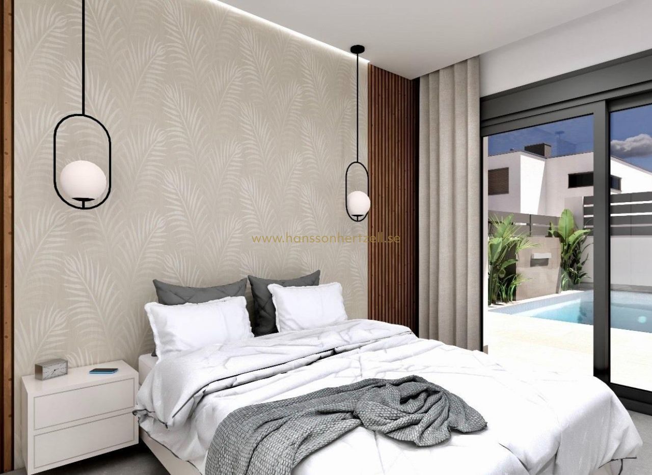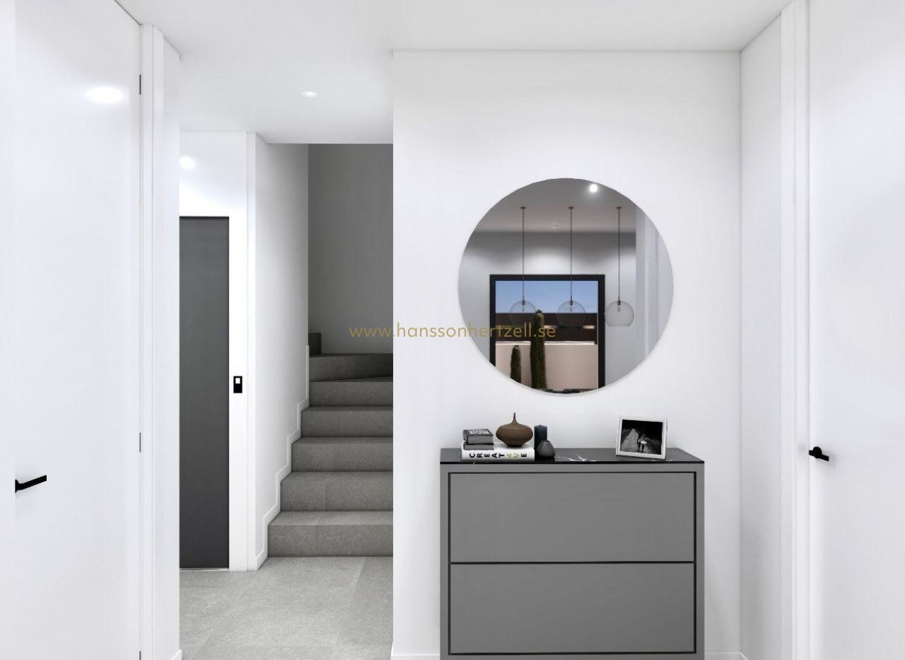 Villas jumelées de luxe neuves à Benijófar – Costa Blanca Living Emplacement privilégié à Benijófar Ces villas jumelées exclusives de construction neuve sont situées dans la charmante ville de Benijófar, l'une des zones les plus prisées de la Costa Blanca. Connue pour son mélange de tradition et de modernité, Benijófar offre tous les services essentiels, notamment des supermarchés, des pharmacies, des banques, des restaurants et des commerces de proximité. Le complexe est stratégiquement situé à seulement 10 km des plages dorées de Guardamar del Segura et à 30 km de l'aéroport d'Alicante, ce qui en fait un emplacement idéal pour une résidence permanente ou des séjours de vacances. Conception spacieuse et moderne Chaque villa a été conçue dans un style contemporain, optimisant l'espace et la lumière naturelle. La distribution comprend trois chambres (une au rez-de-chaussée et deux au premier étage) et trois salles de bains (dont une au sous-sol), ce qui les rend parfaites pour les familles et les invités. Le salon ouvert avec coin repas s'ouvre sur la cuisine entièrement équipée, créant un environnement chaleureux et fonctionnel. De grandes fenêtres renforcent la luminosité dans toute la maison. Caractéristiques haut de gamme et extras Ces villas se distinguent par leurs finitions de haute qualité et leurs détails soignés : Sous-sol de 66 m² avec salle de bains, galerie et buanderie Piscine privée, solarium avec barbecue et évier Cheminée décorative dans le salon Parking privé sur le terrain Ascenseur du sous-sol au dernier étage 3 panneaux solaires photovoltaïques et éclairage LED dans toute la maison Climatisation préinstallée Salles de bains entièrement équipées avec meubles et parois de douche Superficie des terrains à partir de 200 m2 Mode de vie et environnement Benijófar allie le charme d'un village espagnol traditionnel à la commodité des services modernes. Les amoureux de la nature apprécieront le parc naturel voisin, idéal pour la randonnée et le vélo. Pour les amateurs de golf, le club de golf La Marquesa se trouve à seulement 5 km, tandis que plusieurs autres parcours de premier ordre sont situés dans un rayon de 15 km. Les familles peuvent se rendre aux parcs aquatiques de Rojales (4 km) et Torrevieja (12 km), ou explorer la ville animée de Torrevieja, à seulement 12 km. Excellente connectivité Les villas bénéficient d'un accès facile aux autoroutes N-332 et AP-7, assurant des liaisons rapides vers Alicante, Elche, Orihuela Costa et Murcie. La région offre un équilibre parfait entre tranquillité, commodités et accessibilité. Votre maison de rêve sur la Costa Blanca Découvrez le luxe, le confort et la vie méditerranéenne dans ces superbes villas neuves à Benijófar. Contactez-nous dès aujourd'hui pour obtenir plus de détails et organiser une visite de votre future maison.