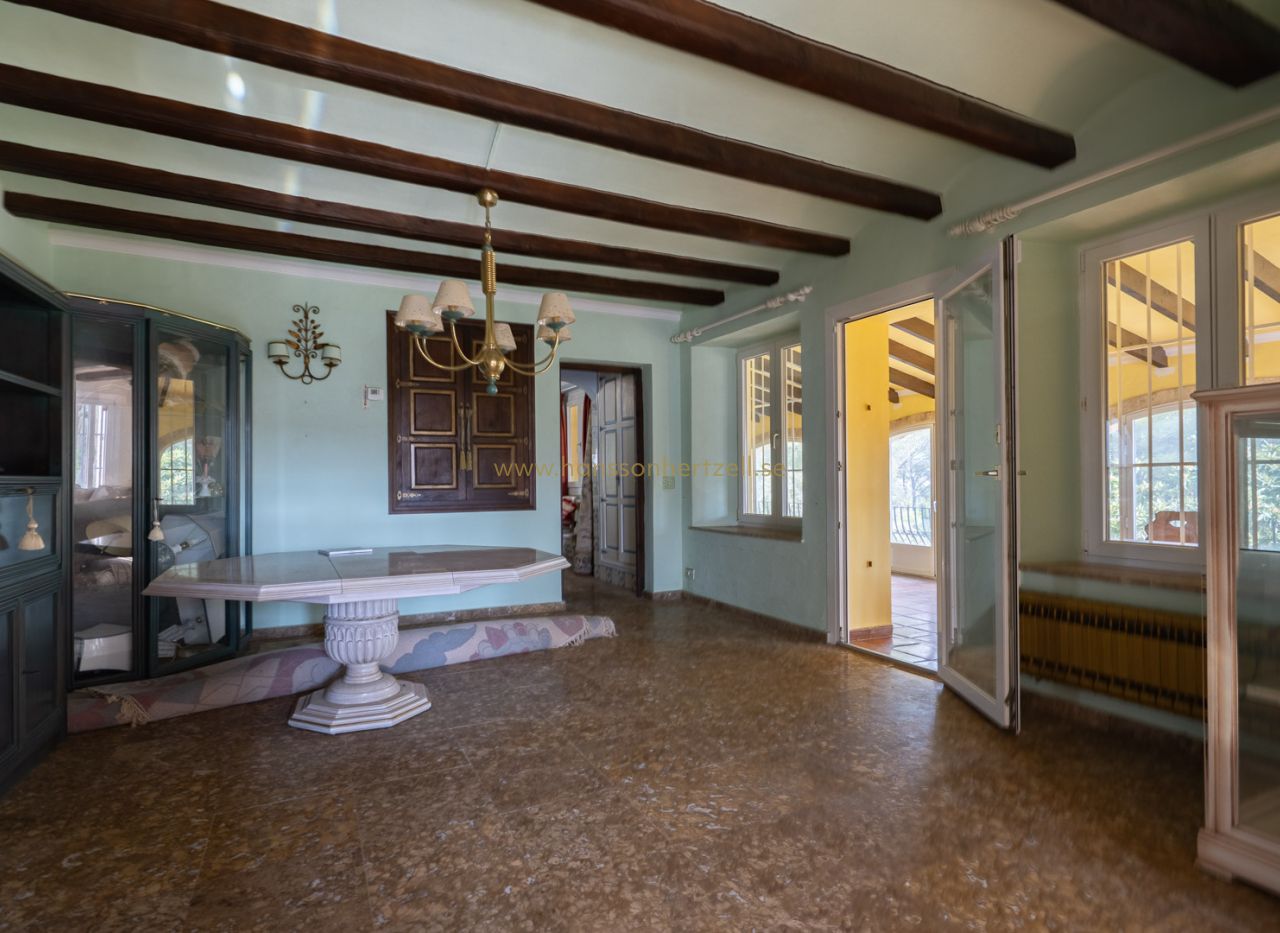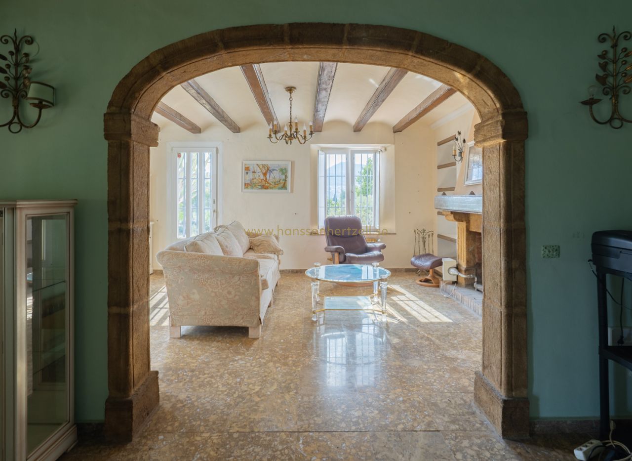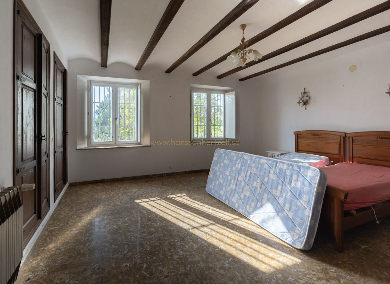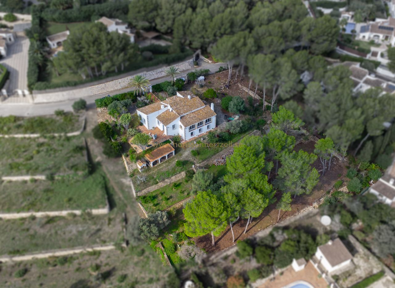 Spacieuse villa sur un grand terrain à vendre à La Lluca, Jávea. Cette villa traditionnelle est située dans le quartier résidentiel calme et exclusif de La Lluca, sur un terrain de 2 325 m2 avec une surface constructible de 0,30 m2/m2, la villa peut être étendue jusqu'à 697 m2. Il est également possible d'acquérir 4 terrains à bâtir urbanisés adjacents, d'une superficie allant de 1 748 m2 à 2719 m2 et également avec une surface constructible de 0,30m2/m2. Il est possible de créer un terrain à bâtir supplémentaire en divisant les 3 terrains sud en 4 terrains. La villa est répartie sur un seul étage et dispose également d'un demi sous-sol où il est possible de créer une spacieuse maison d'amis. Le rez-de-chaussée comprend un hall d'entrée, un salon avec cheminée, une salle à manger, une cuisine, une grande naya avec cheminée, une chambre principale avec salle de bains attenante et deux chambres doubles avec salle de bains commune. La villa se caractérise par ses éléments traditionnels, notamment l'utilisation de pierres de tosca, de portes en bois massif et d'arcs. Le terrain est planté de plusieurs oliviers centenaires, de cactus, de palmiers, d'arbres fruitiers et de pins. La Lluca est connue pour être l'un des quartiers résidentiels les plus recherchés et les mieux entretenus de Jávea, avec ses larges rues bien entretenues, ses villas de luxe et son environnement calme et verdoyant. Grâce à sa situation centrale, ce quartier allie tranquillité et intimité à un accès facile aux commerces, restaurants, installations sportives et plages. Plus d'informations sur demande.