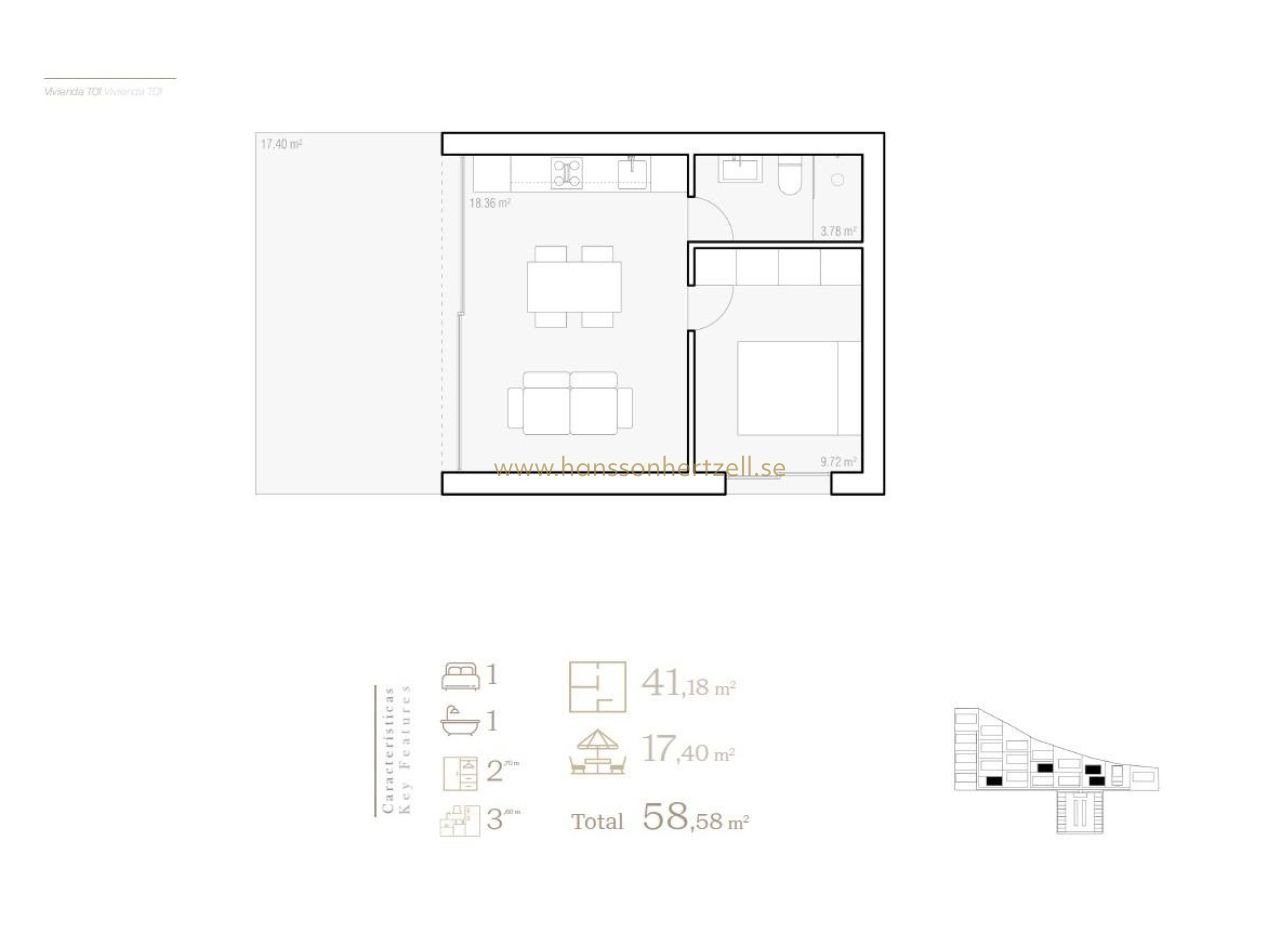 Villas individuelles neuves à Alfaz del Pi, près de la plage d'Albir Projet résidentiel exclusif à Alfaz del Pi Ce nouveau projet résidentiel exclusif comprend 19 villas individuelles situées à Alfaz del Pi, dans un quartier résidentiel moderne et bien aménagé, entouré de maisons contemporaines de grande qualité. Situé à environ 5 km de la mer Méditerranée, le projet bénéficie d'une position privilégiée entre le littoral et la chaîne de montagnes d'Alicante, offrant un environnement paisible et parfaitement desservi. C'est une option idéale pour y vivre à l'année, comme résidence secondaire ou comme investissement intelligent sur la Costa Blanca. Un cadre privilégié entre mer et montagne Alfaz del Pi est connu pour son style de vie décontracté, sa communauté internationale et son excellente qualité de vie. La municipalité offre un équilibre parfait entre nature et services, avec le parc naturel de la Sierra Helada à proximité et la magnifique plage d'Albir à quelques minutes. Benidorm n'est qu'à 10 minutes en voiture et offre un large éventail de centres commerciaux, de restaurants, de lieux de loisirs et de parcs à thème tels que Terra Mitica et Aqualandia. La région offre également des terrains de golf, des sports nautiques, des activités culturelles et un climat méditerranéen doux toute l'année. Conception et agencement communautaire bien pensés La résidence est répartie sur deux niveaux afin de s'adapter naturellement au terrain. Le niveau supérieur est entièrement dédié aux logements et aux espaces communs paysagers, créant ainsi un environnement piétonnier sûr et calme. Le niveau inférieur abrite des places de parking, des débarras et des locaux techniques, discrètement intégrés dans la conception. Cette séparation garantit l'intimité, la tranquillité et une expérience de vie sans voiture dans la zone résidentielle. Villas modernes avec jardins privés Les villas sont réparties sur un seul niveau et offrent une ou deux chambres avec une salle de bains. Chaque maison présente un design contemporain avec des lignes épurées, de grandes fenêtres et une entrée indépendante. De spacieuses terrasses d'environ 17 m² s'intègrent parfaitement aux espaces de vie, tandis que les jardins privés vont de 46 m² à 200 m², idéaux pour la vie en plein air. Toutes les maisons comprennent une place de parking privée, avec des débarras disponibles en option. Espaces communs et spécifications de qualité Les résidents peuvent profiter d'une piscine commune magnifiquement conçue avec solarium, entourée de jardins paysagers qui créent une atmosphère calme et accueillante. Les maisons comprennent une cuisine entièrement équipée en finition blanc mat avec plan de travail noir, la climatisation par unités split, un système aérothermique pour l'eau chaude, une porte d'entrée renforcée et des salles de bains avec meubles encastrés et parois de douche. Un ascenseur relie le niveau du parking à la zone résidentielle pour plus de commodité. Distances clés La plage d'Albir est à environ 5 km. Benidorm est à 6 km. La ville d'Alicante est à 49 km. L'aéroport d'Alicante est à environ 62 km. Plusieurs terrains de golf se trouvent à 15 ou 20 km. Votre nouvelle maison sur la Costa Blanca vous attend Profitez de l'intimité, d'un design moderne et d'un emplacement exceptionnel à Alfaz del Pi. Contactez-nous dès aujourd'hui pour obtenir plus d'informations ou pour organiser une visite de ces villas neuves exclusives.