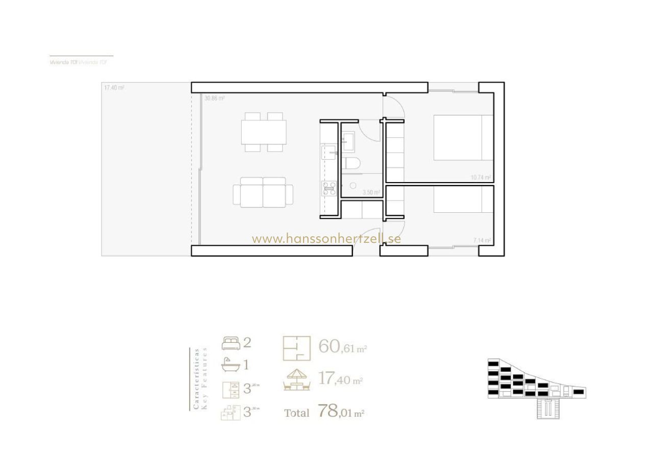 Villas individuelles neuves à Alfaz del Pi, près de la plage d'Albir Projet résidentiel exclusif à Alfaz del Pi Ce nouveau projet résidentiel exclusif comprend 19 villas individuelles situées à Alfaz del Pi, dans un quartier résidentiel moderne et bien aménagé, entouré de maisons contemporaines de grande qualité. Situé à environ 5 km de la mer Méditerranée, le projet bénéficie d'une position privilégiée entre le littoral et la chaîne de montagnes d'Alicante, offrant un environnement paisible et parfaitement desservi. C'est une option idéale pour y vivre à l'année, comme résidence secondaire ou comme investissement intelligent sur la Costa Blanca. Un cadre privilégié entre mer et montagne Alfaz del Pi est connu pour son style de vie décontracté, sa communauté internationale et son excellente qualité de vie. La municipalité offre un équilibre parfait entre nature et services, avec le parc naturel de la Sierra Helada à proximité et la magnifique plage d'Albir à quelques minutes. Benidorm n'est qu'à 10 minutes en voiture et offre un large éventail de centres commerciaux, de restaurants, de lieux de loisirs et de parcs à thème tels que Terra Mitica et Aqualandia. La région offre également des terrains de golf, des sports nautiques, des activités culturelles et un climat méditerranéen doux toute l'année. Conception et agencement communautaire bien pensés La résidence est répartie sur deux niveaux afin de s'adapter naturellement au terrain. Le niveau supérieur est entièrement dédié aux logements et aux espaces communs paysagers, créant ainsi un environnement piétonnier sûr et calme. Le niveau inférieur abrite des places de parking, des débarras et des locaux techniques, discrètement intégrés dans la conception. Cette séparation garantit l'intimité, la tranquillité et une expérience de vie sans voiture dans la zone résidentielle. Villas modernes avec jardins privés Les villas sont réparties sur un seul niveau et offrent une ou deux chambres avec une salle de bains. Chaque maison présente un design contemporain avec des lignes épurées, de grandes fenêtres et une entrée indépendante. De spacieuses terrasses d'environ 17 m² s'intègrent parfaitement aux espaces de vie, tandis que les jardins privés vont de 46 m² à 200 m², idéaux pour la vie en plein air. Toutes les maisons comprennent une place de parking privée, avec des débarras disponibles en option. Espaces communs et spécifications de qualité Les résidents peuvent profiter d'une piscine commune magnifiquement conçue avec solarium, entourée de jardins paysagers qui créent une atmosphère calme et accueillante. Les maisons comprennent une cuisine entièrement équipée en finition blanc mat avec plan de travail noir, la climatisation par unités split, un système aérothermique pour l'eau chaude, une porte d'entrée renforcée et des salles de bains avec meubles encastrés et parois de douche. Un ascenseur relie le niveau du parking à la zone résidentielle pour plus de commodité. Distances clés La plage d'Albir est à environ 5 km. Benidorm est à 6 km. La ville d'Alicante est à 49 km. L'aéroport d'Alicante est à environ 62 km. Plusieurs terrains de golf se trouvent à 15 ou 20 km. Votre nouvelle maison sur la Costa Blanca vous attend Profitez de l'intimité, d'un design moderne et d'un emplacement exceptionnel à Alfaz del Pi. Contactez-nous dès aujourd'hui pour obtenir plus d'informations ou pour organiser une visite de ces villas neuves exclusives.