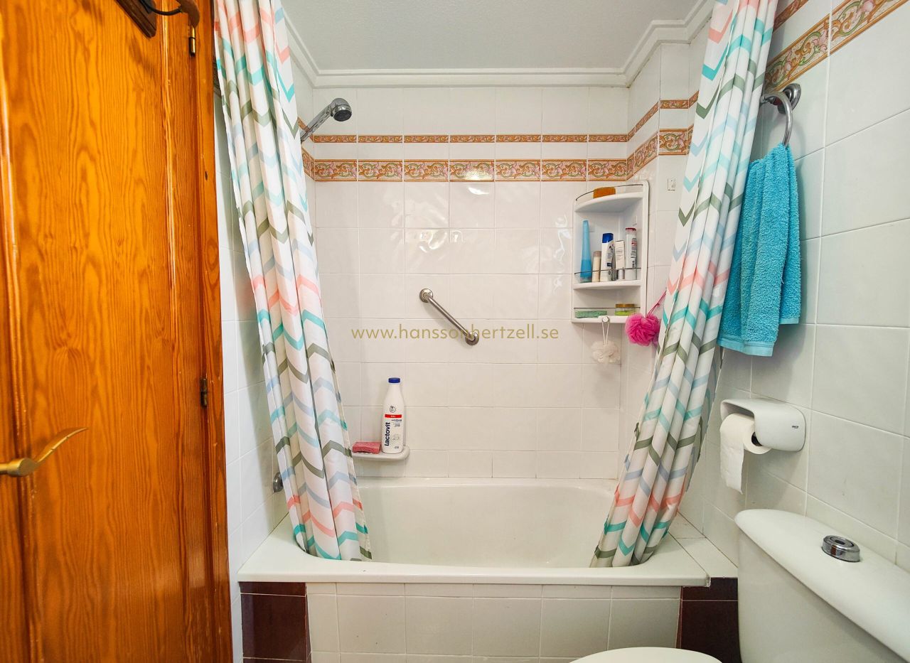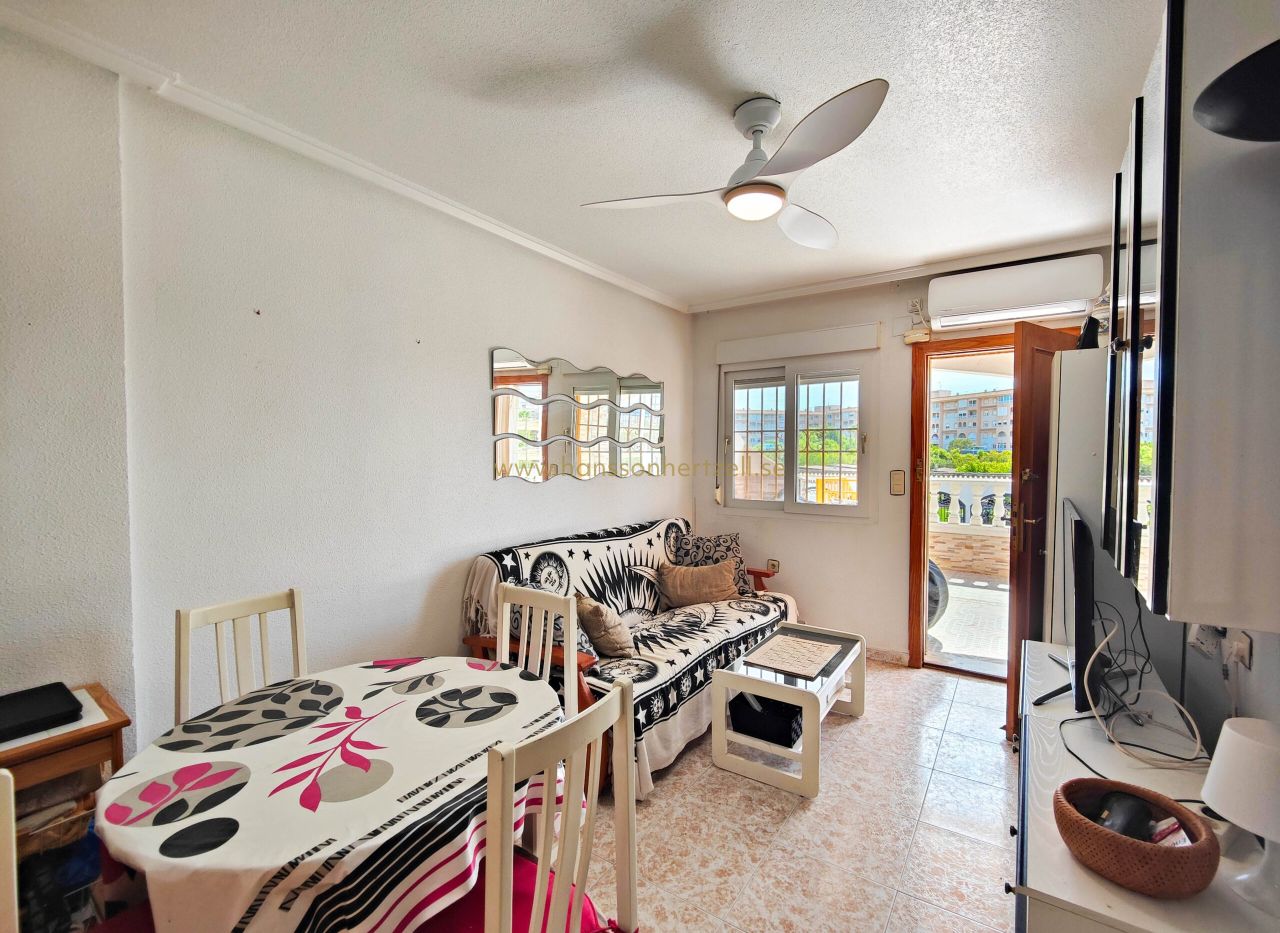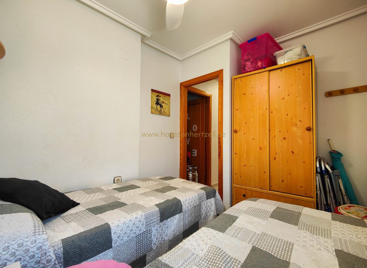 Ce bungalow de 3 chambres à Torrevieja offre 50m² à seulement 200m de la plage pour €159,500. Comprend solarium privé, piscine commune et vues dégagées. Situé à 45 minutes de l'aéroport d'Alicante-Elche.