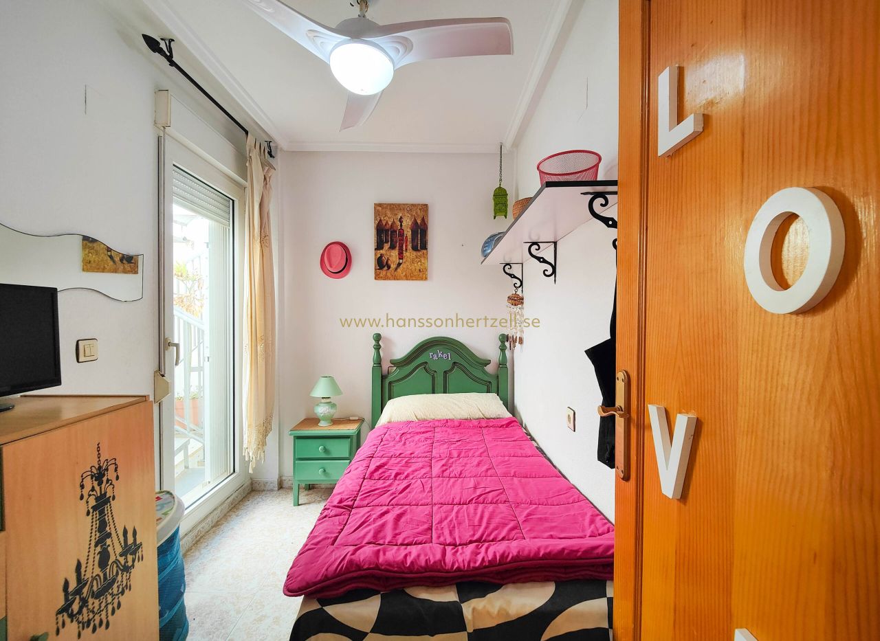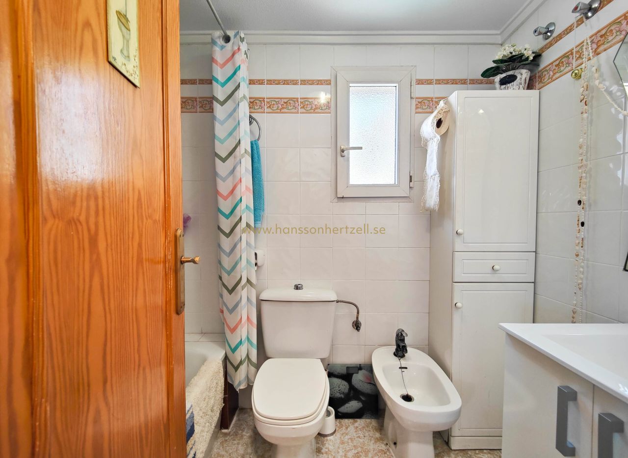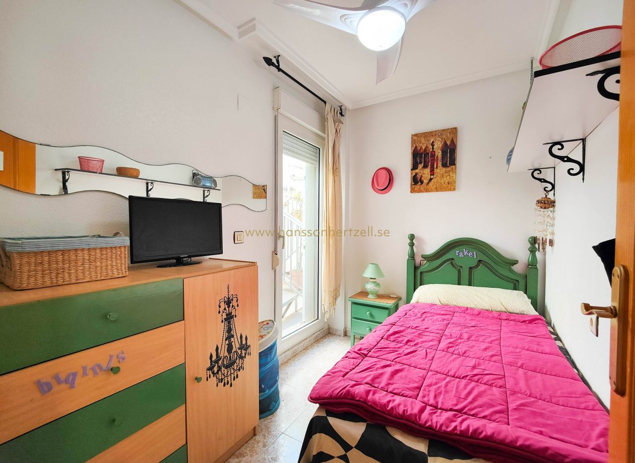 Ce bungalow de 3 chambres à Torrevieja offre 50m² à seulement 200m de la plage pour €159,500. Comprend solarium privé, piscine commune et vues dégagées. Situé à 45 minutes de l'aéroport d'Alicante-Elche.