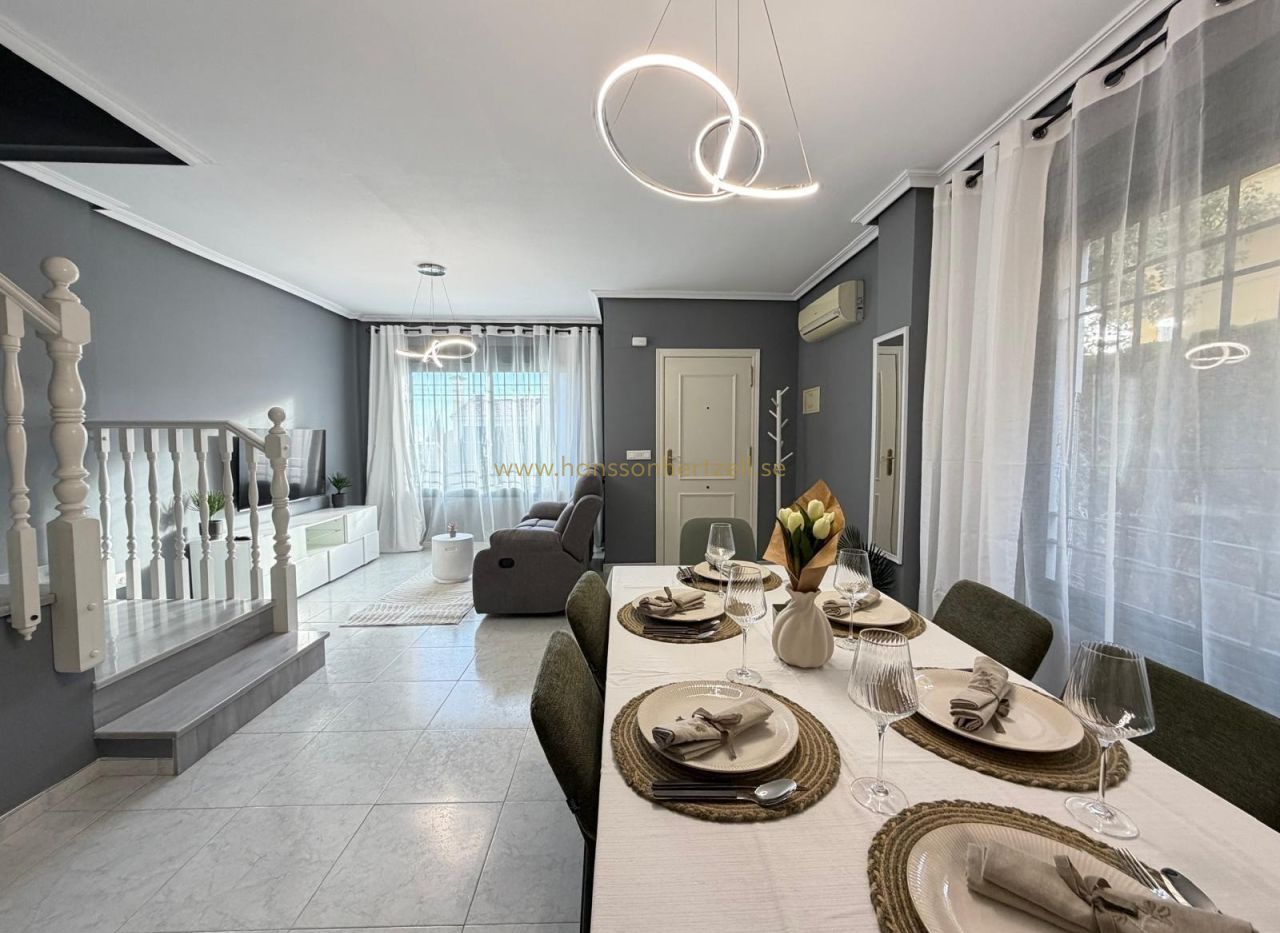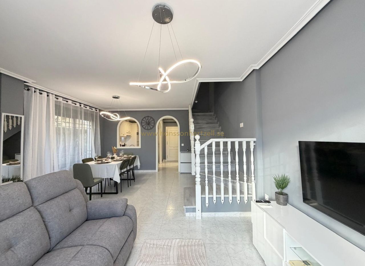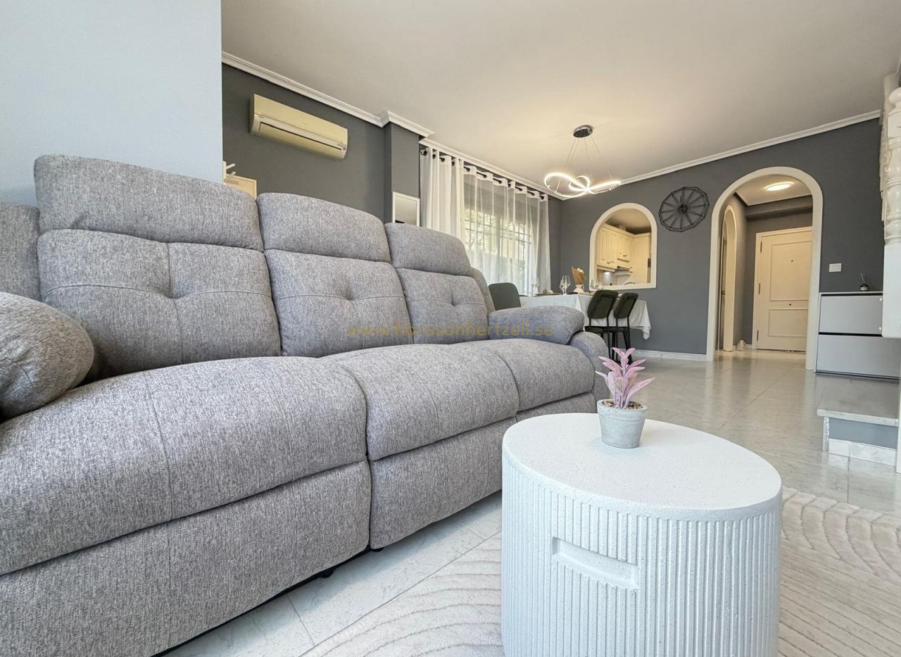 Découvrez cette maison mitoyenne exceptionnelle dans l'un des complexes résidentiels les plus recherchés d'Orihuela Costa. Construite en 2003 et récemment rénovée selon des normes modernes, cette propriété de 85m² combine la vie côtière méditerranéenne avec un design pratique. La maison dispose de deux chambres spacieuses, deux salles de bains complètes avec des équipements contemporains et une climatisation intégrée dans toutes les pièces. Chaque pièce bénéficie de lumière naturelle, créant une atmosphère lumineuse et accueillante parfaite pour vivre toute l'année ou pour des retraites de vacances.