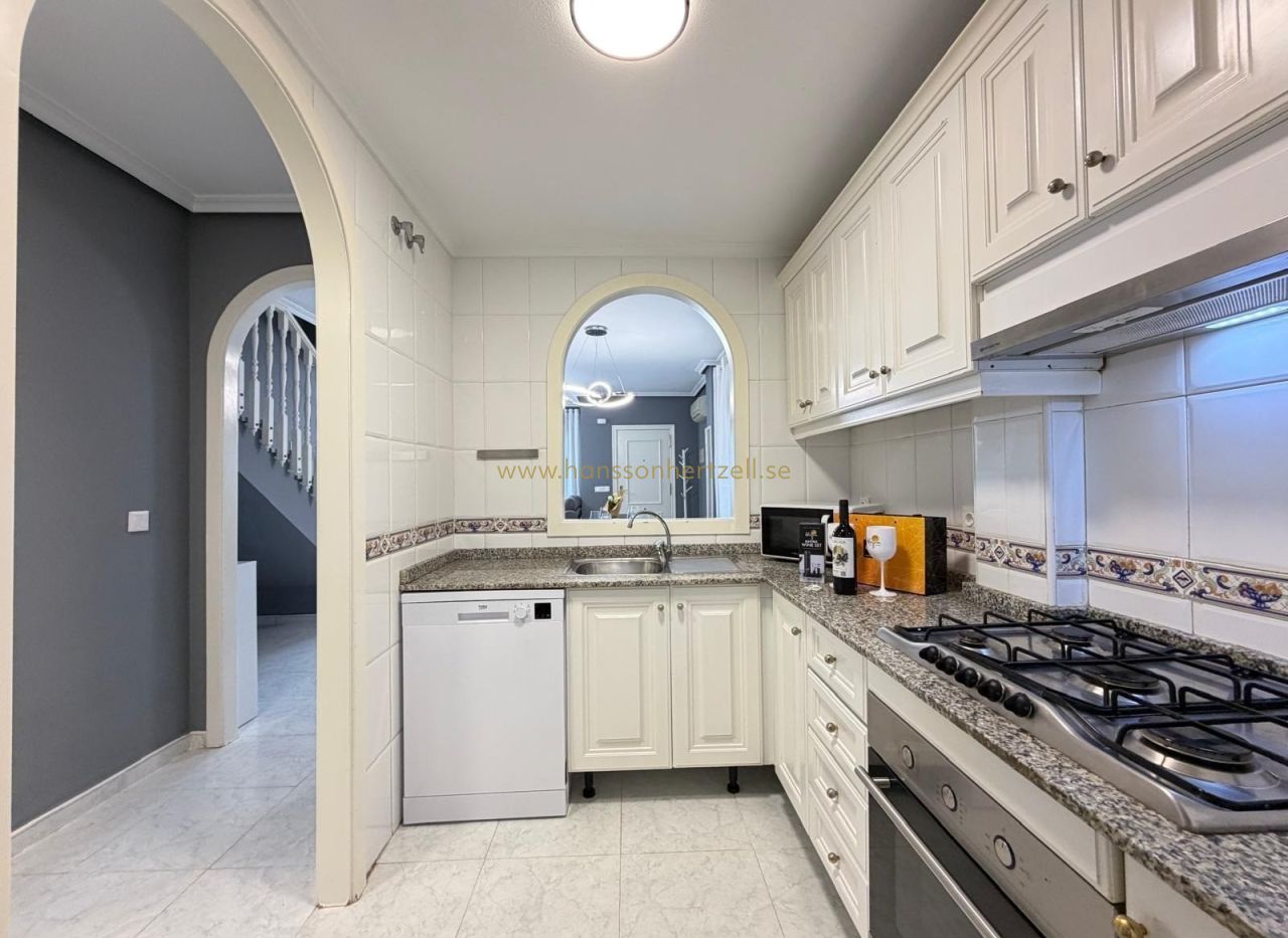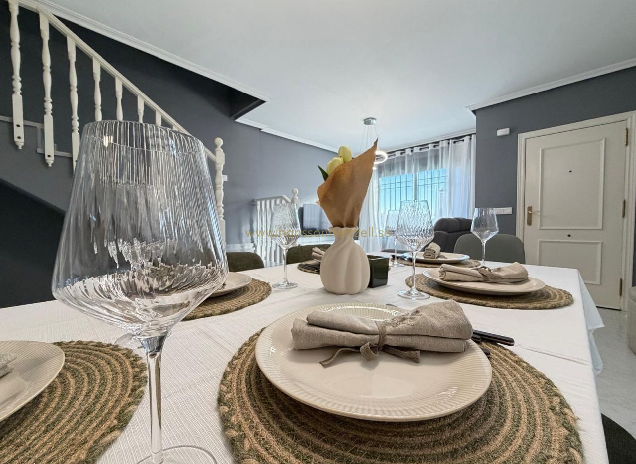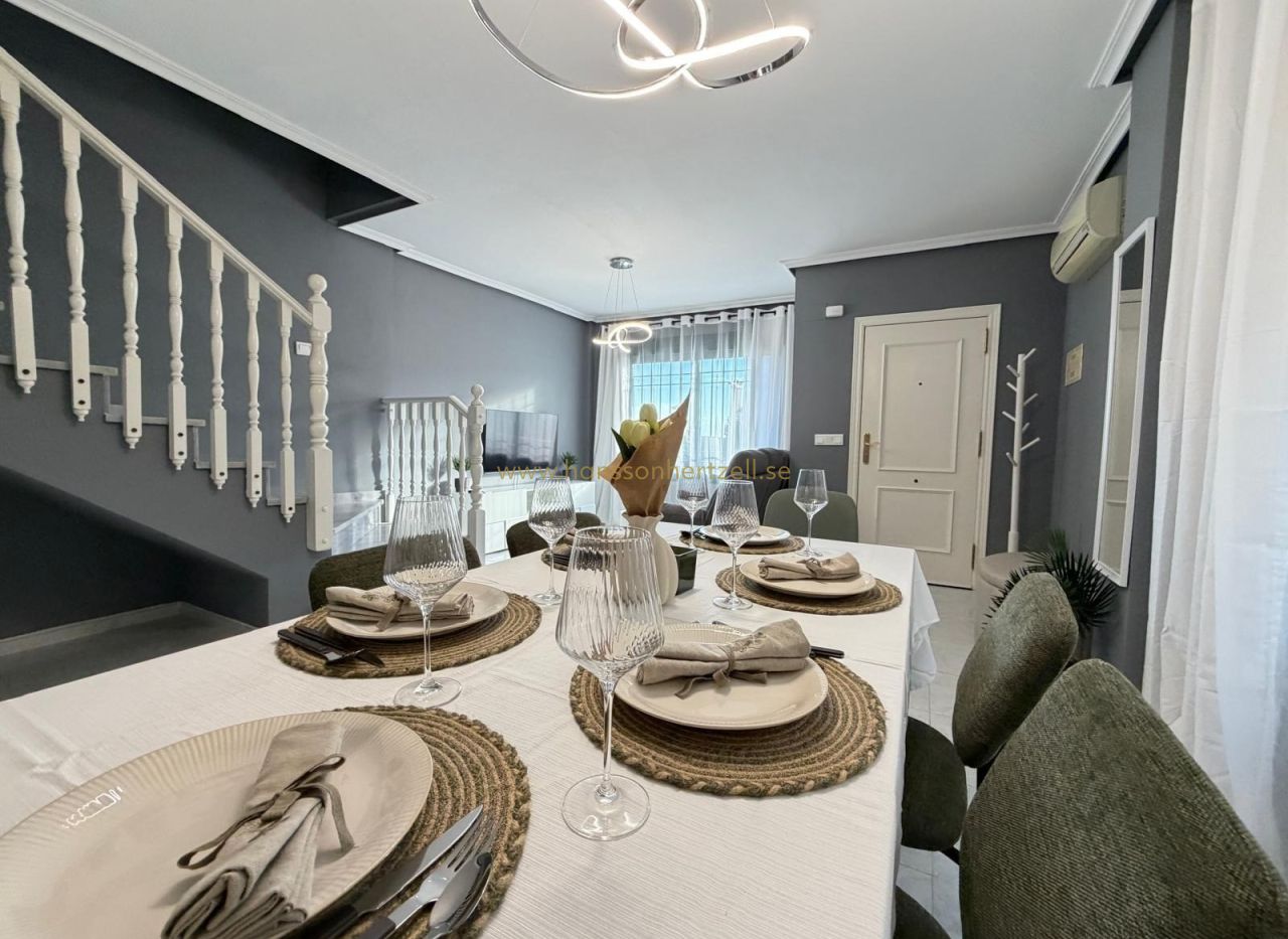 Découvrez cette maison mitoyenne exceptionnelle dans l'un des complexes résidentiels les plus recherchés d'Orihuela Costa. Construite en 2003 et récemment rénovée selon des normes modernes, cette propriété de 85m² combine la vie côtière méditerranéenne avec un design pratique. La maison dispose de deux chambres spacieuses, deux salles de bains complètes avec des équipements contemporains et une climatisation intégrée dans toutes les pièces. Chaque pièce bénéficie de lumière naturelle, créant une atmosphère lumineuse et accueillante parfaite pour vivre toute l'année ou pour des retraites de vacances.