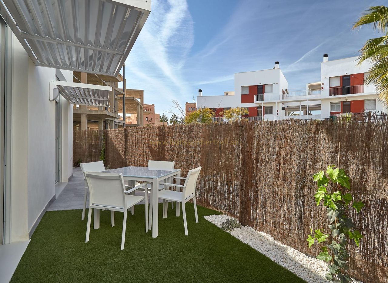 COMPLEXE RÉSIDENTIEL DE NOUVELLE CONSTRUCTION À VERA Nouvelle construction résidentielle d'appartements à Vera à seulement 400m de la grande plage de Vera nommée "El Playazo". Les typologies sont rez-de-chaussée avec deux jardins privés, un dans chaque orientation, ce qui vous permet de profiter du soleil ou de l'ombre quand vous le souhaitez selon l'heure de la journée ou la saison de l'année. Les premiers étages disposent de terrasses et les penthouses de grands solariums. Tous les appartements ont des plafonds très hauts (2,95 m) qui donnent une grande sensation d'espace. La cuisine, entièrement meublée et équipée, est intégrée à l'espace salon-salle à manger avec un coin bar. Les portes et les armoires sont laquées en blanc et le sol est en bois stratifié. La climatisation chaud-froid et l'eau chaude sont générées par un dispositif aérothermique DAIKIN de dernière génération, une technologie qui permet d'économiser jusqu'à 70% de la consommation d'électricité par rapport aux systèmes traditionnels. Toutes les salles de bains sont équipées d'une douche au lieu d'une baignoire, de miroirs encastrés et également d'un comptoir en pierre et d'une cloison en verre dans la salle de bains principale. Les stores du salon et de la chambre principale sont électriques, hermétiques et à lames orientables. Les jardins et le solarium sont livrés avec des sols finis combinant du gazon artificiel et un beau dallage imitant le bois. Chaque maison comprend un espace de stationnement extérieur privé. Chaque bloc de la promotion dispose d'un ascenseur indépendant. Tant les bâtiments que les appartements présentent une série de caractéristiques d'architecture bioclimatique (orientation, isolation, fenêtres et volets, pergolas) qui permettent une régulation naturelle optimale de la ventilation, de la température et de la lumière au cours des différentes saisons de l'année. Les espaces communs sont constitués de places piétonnes et d'espaces verts, avec une grande piscine pour adultes et une autre pour enfants sur la place centrale. Toute l'urbanisation est exempte de barrières architecturales pour les personnes handicapées. Ici, la tranquillité et la détente sont garanties. Vera est l'un des meilleurs endroits naturistes d'Europe, reconnu pour la qualité et la pureté de ses eaux. Elle offre six kilomètres de plages (Las Marinas-Bolaga, Puerto Rey, El Playazo, Quitapellejos). Vera est limitrophe des célèbres destinations touristiques telles que Mojacar et les grottes d'Almanzora. Complexe résidentiel situé à environ 1,5 heure de route de l'aéroport de Murcia - Corvera et à environ 2 heures de l'aéroport d'Alicante.