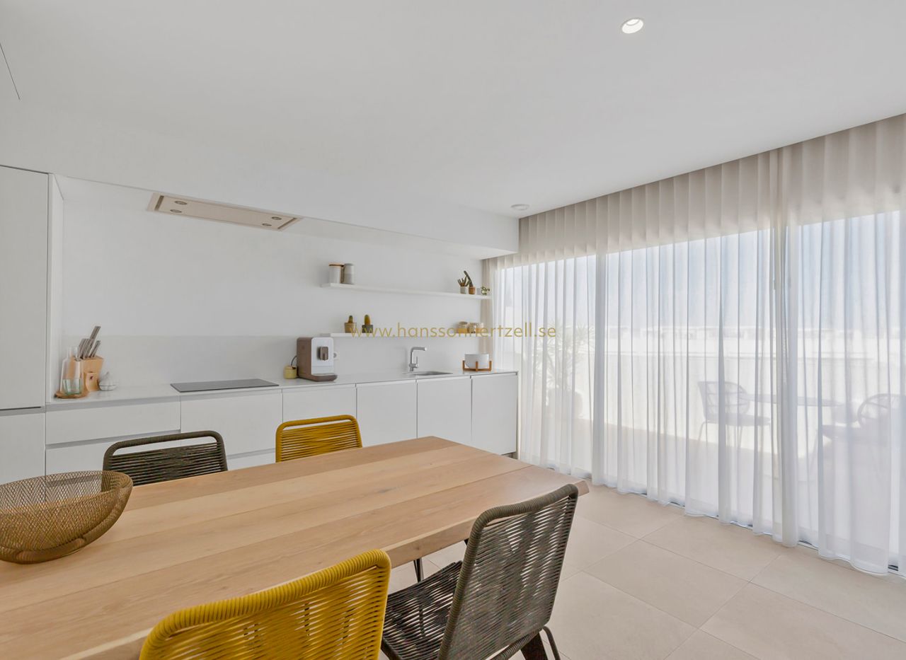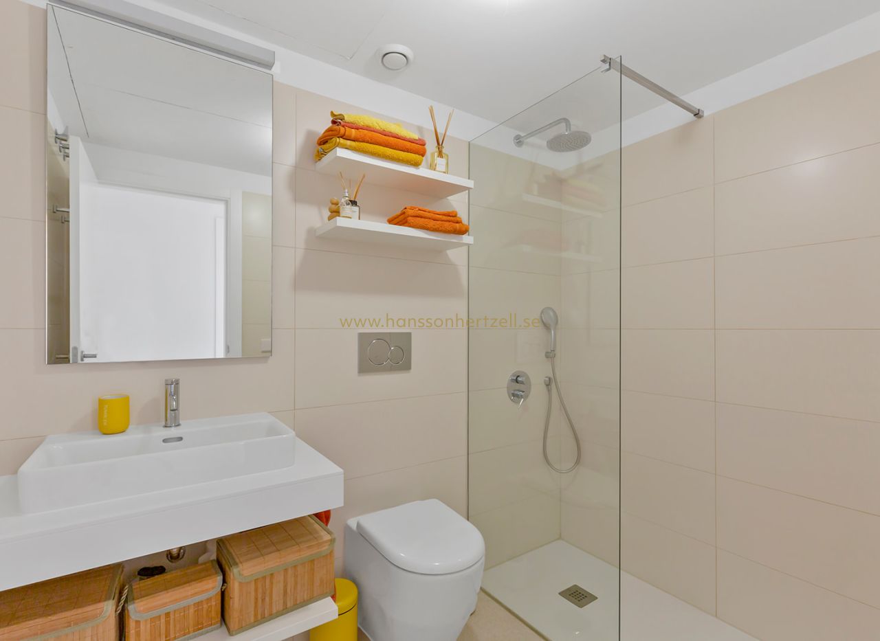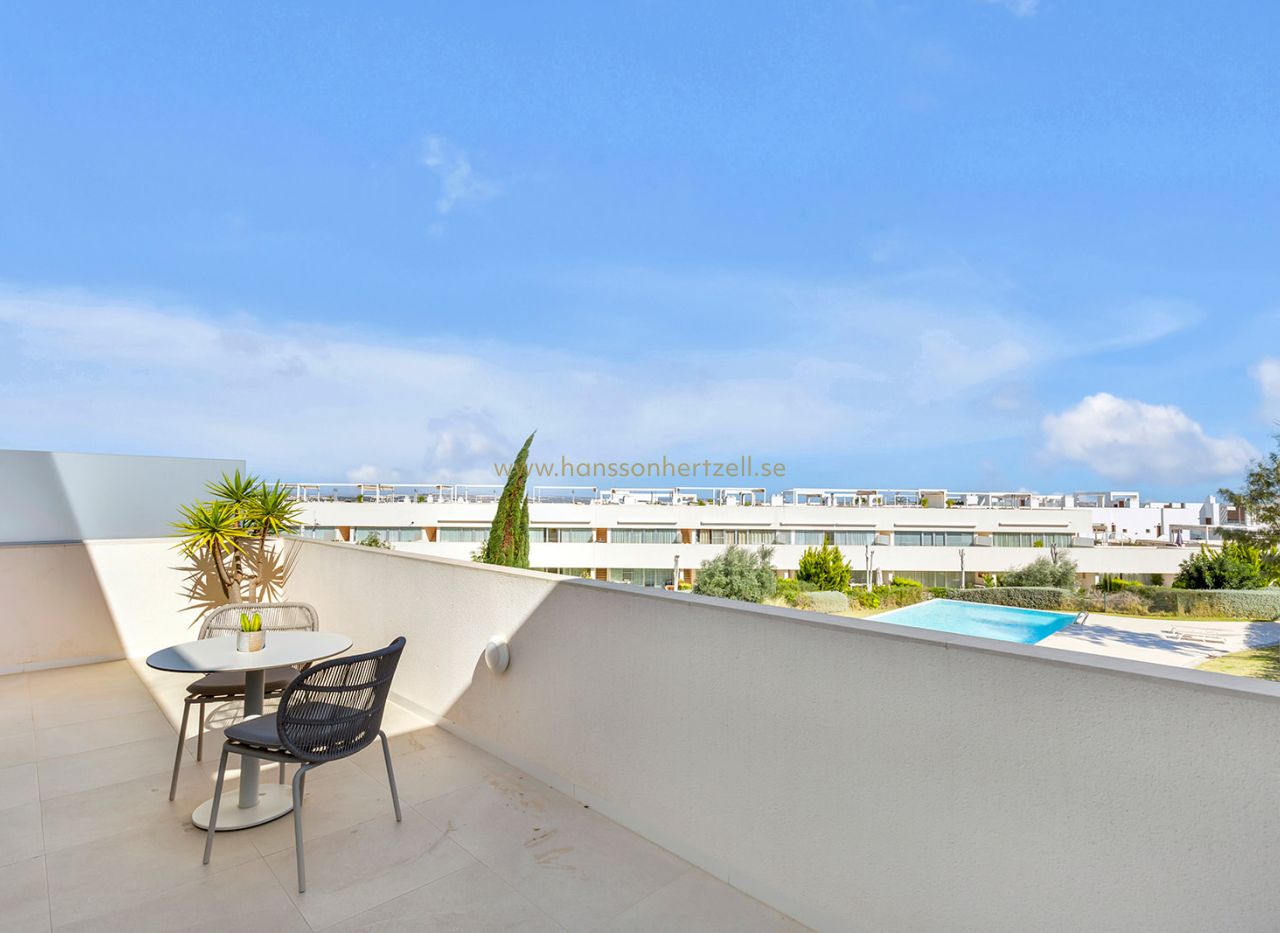 Le grand attrait de ce penthouse à Torrevieja est son impressionnant solarium de 75m², parfait pour profiter du climat méditerranéen de la Costa Blanca. La terrasse de 20m² offre des vues sur les jardins, tandis que le solarium procure des panoramas uniques vers la mer Méditerranée et les célèbres lacs salés roses de la Costa Blanca.