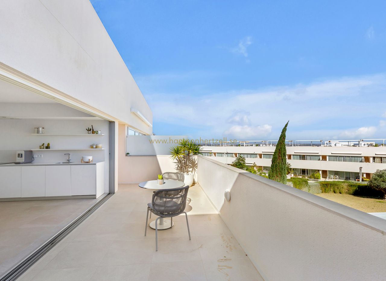 Ce penthouse exclusif à Torrevieja offre 3 chambres, 2 salles de bains et 84m² pour 360.000€. Situé à Los Balcones à 4km de la plage, comprend solarium 75m², terrasse, parking souterrain et entièrement meublé.