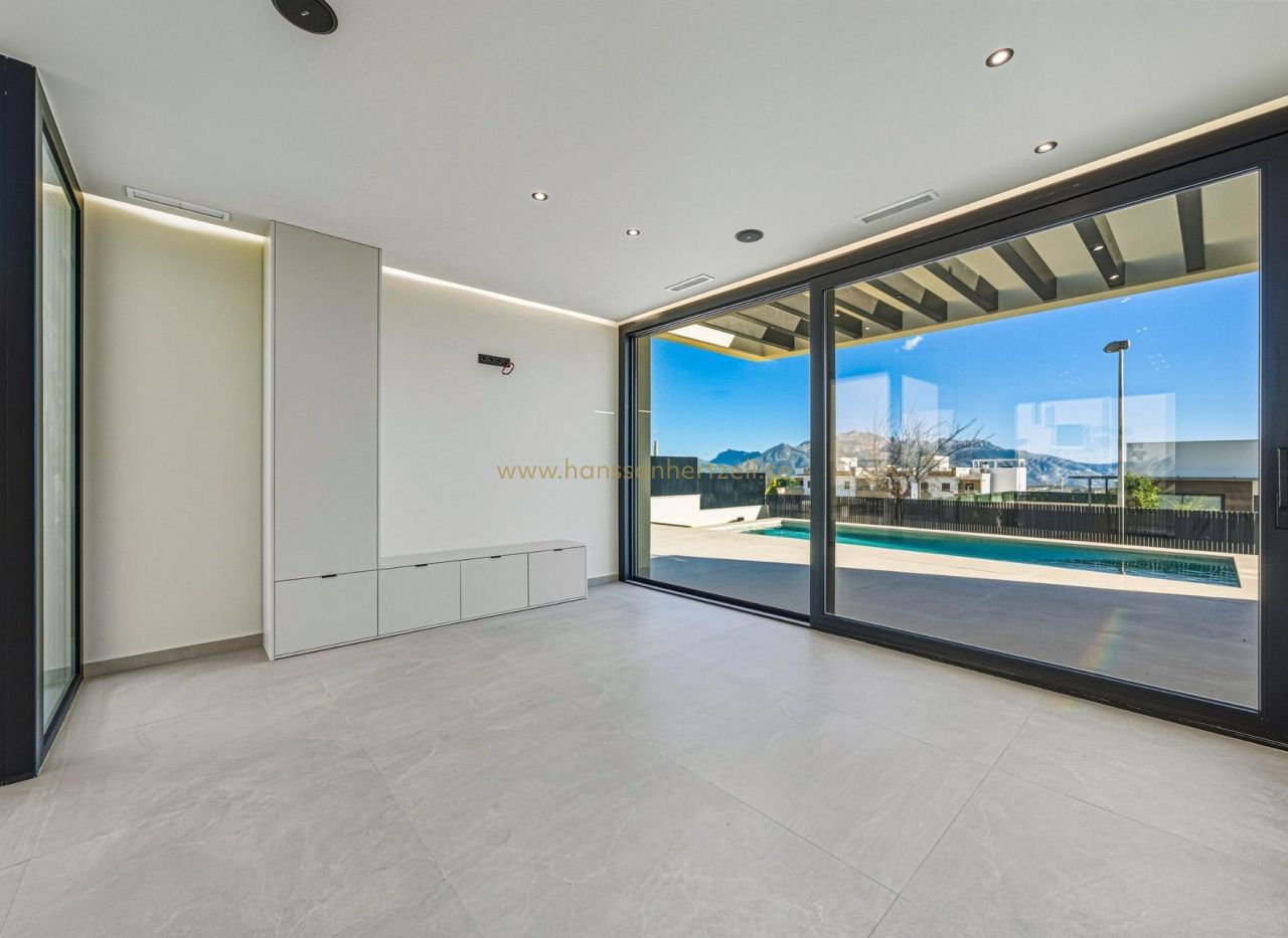Villa neuve prête à emménager avec vue sur la mer à La Alberca Polop Villa moderne de luxe dans un cadre naturel de montagne Cette villa contemporaine prête à emménager est située à La Alberca, un quartier résidentiel calme de Polop, entouré de forêts et de montagnes. Située en hauteur, la propriété bénéficie d'une vue panoramique sur la mer Méditerranée, les montagnes et le centre historique de Polop. La villa offre intimité, tranquillité et excellentes connexions avec la côte et les villes voisines. Polop est un charmant village de la région de Marina Baixa, sur la Costa Blanca, connu pour son caractère traditionnel et son environnement naturel. La propriété est proche de tous les services de La Nucia, notamment des commerces, des restaurants, des centres sportifs et des écoles, tandis que les plages et les villes côtières animées ne sont qu'à quelques minutes en voiture. Aménagement spacieux sur le rez-de-chaussée, le sous-sol et le solarium La villa est répartie sur un étage principal, un sous-sol et un solarium sur le toit, offrant un espace de vie généreux et une grande flexibilité. À l'étage principal, un hall d'entrée accueillant avec placard intégré mène à deux chambres avec salle de bains, dont une suite parentale avec des portes-fenêtres relevables donnant sur un balcon Juliette et une terrasse. Le salon et la salle à manger ouverts communiquent directement avec une terrasse pergola couverte et une piscine privée d'eau salée. Le sous-sol comprend deux chambres supplémentaires avec salle de bains privative et grandes fenêtres, une salle de jeux ou une salle de cinéma modulable avec raccordements à l'eau et à l'électricité pour un coin bar, une buanderie entièrement équipée avec des appareils Haier et deux locaux techniques. Le solarium sur le toit offre un vaste espace extérieur avec vue panoramique sur la mer et est prêt pour l'installation future de panneaux solaires. Une cuisine extérieure, de nombreux casiers de rangement et un jardin paysager de style méditerranéen avec irrigation automatique complètent l'extérieur. Caractéristiques haut de gamme et efficacité énergétique Cette villa se distingue par ses finitions haut de gamme et ses installations de pointe, notamment Îlot central avec appareils électroménagers BOSCH intégrés Plans de travail en pierre naturelle à l'intérieur et à l'extérieur Pré-installation du chauffage au sol Système de climatisation aérothermique Mitsubishi Classe d'efficacité énergétique A Pré-installation pour système domotique Piscine d'eau salée avec chauffage en option Parking privé pour deux véhicules De grandes fenêtres avec vitrage anti-solaire maximisent la lumière naturelle tout en garantissant confort et sécurité. Emplacement et distances exceptionnels Centre de Polop à 2 km La Nucia à 4 km Benidorm à 12 km Altea à 10 km Plages à 10 km Villaitana Golf à 14 km Aéroport d'Alicante à 65 km Assurez-vous la maison de vos rêves à Polop Cette villa exceptionnelle, prête à emménager, allie intimité, design et vues panoramiques dans l'une des zones intérieures les plus attrayantes de la Costa Blanca. Contactez-nous dès aujourd'hui pour organiser une visite privée et faire de cette villa de luxe à La Alberca Polop votre nouvelle maison.