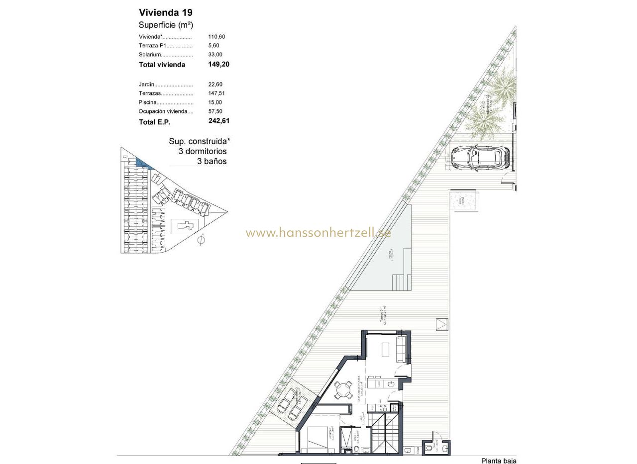 Villas neuves avec piscine privée à Serena Golf-Los Alcazares Collection boutique de maisons modernes près de la mer Découvrez un ensemble boutique exclusif de 37 villas modernes de style quadruple et jumelé situé à La Serena Golf à Los Alcazares, sur la magnifique Costa Calida. Ces maisons contemporaines sont conçues pour les acheteurs à la recherche d'intimité, de soleil et d'un style de vie en plein air, à seulement 300 mètres des eaux chaudes de la Mar Menor. Los Alcazares est une charmante ville côtière connue pour sa longue promenade, ses plages de sable et son atmosphère méditerranéenne détendue. La région bénéficie de plus de 300 jours d'ensoleillement par an et offre d'excellents restaurants, magasins, marinas et installations sportives. Son emplacement entre la mer et le terrain de golf en fait l'une des destinations les plus prisées de la région, tant pour y vivre à l'année que pour y passer ses vacances. Villas modernes avec piscine privée et espace de vie extérieur Chaque propriété dispose d'un terrain privé avec sa propre piscine, créant ainsi l'environnement idéal pour profiter du climat méditerranéen tout au long de l'année. Les maisons comprennent 3 chambres et 2 ou 3 salles de bains, ainsi que des toilettes pour invités, offrant des espaces de vie confortables et fonctionnels, idéaux pour les familles ou les invités. Les villas sont conçues pour mettre l'accent sur la vie en plein air. À côté de la piscine, vous trouverez un espace barbecue et des toilettes extérieures pour les invités, parfaits pour recevoir vos amis et votre famille. Le solarium sur le toit offre un espace supplémentaire pour se détendre au soleil et comprend une douche solaire avec pré-installation pour un jacuzzi et une cuisine d'été. Le stationnement est inclus à la fois dans le terrain privé et avec une place de parking souterraine attribuée. Finitions de haute qualité et équipements modernes Les maisons sont construites avec des matériaux modernes et des spécifications de qualité conçues pour le confort et le style. Cuisine entièrement équipée avec des appareils électroménagers en verre blanc Salles de bains avec miroirs rétroéclairés, parois de douche et meubles-lavabos Volets roulants motorisés Éclairage de base Climatisation centralisée entièrement installée Ces caractéristiques garantissent un confort de vie optimal, que la propriété soit utilisée comme résidence principale ou comme maison de vacances. Équipements de style resort et emplacement exceptionnel Les propriétaires bénéficient également d'un accès aux installations communes de style resort d'un complexe voisin. Ces équipements comprennent des jardins paysagers, une piscine commune de style lagon, un espace spa, une salle de sport et un sauna. L'emplacement offre un accès facile aux plages, aux terrains de golf et aux villes voisines. Plage de Mar Menor à 0,3 km Golf La Serena à côté du complexe Centre-ville de Los Alcazares à 2 km Cartagena à 22 km Murcie à 40 km Aéroport international de la région de Murcie à 30 km Aéroport d'Alicante Elche 90 km Les eaux peu profondes de la Mar Menor sont parfaites pour la baignade, la voile, le paddle surf et d'autres sports nautiques tout au long de l'année. Assurez-vous un style de vie méditerranéen à Los Alcazares Ces villas neuves offrent la combinaison parfaite entre plage, golf et confort moderne sur la Costa Calida. Contactez-nous dès aujourd'hui pour recevoir plus d'informations ou organiser une visite et vous assurer votre nouvelle maison à Serena Golf à Los Alcazares.
