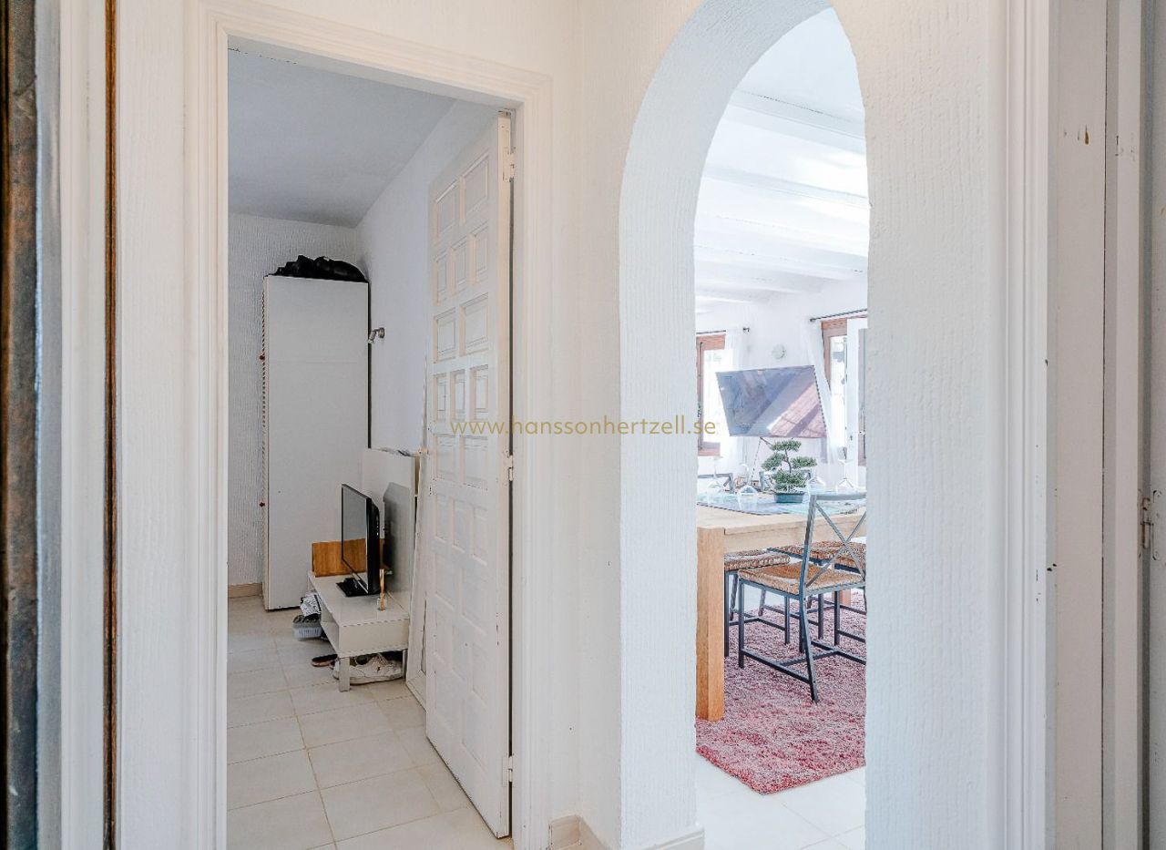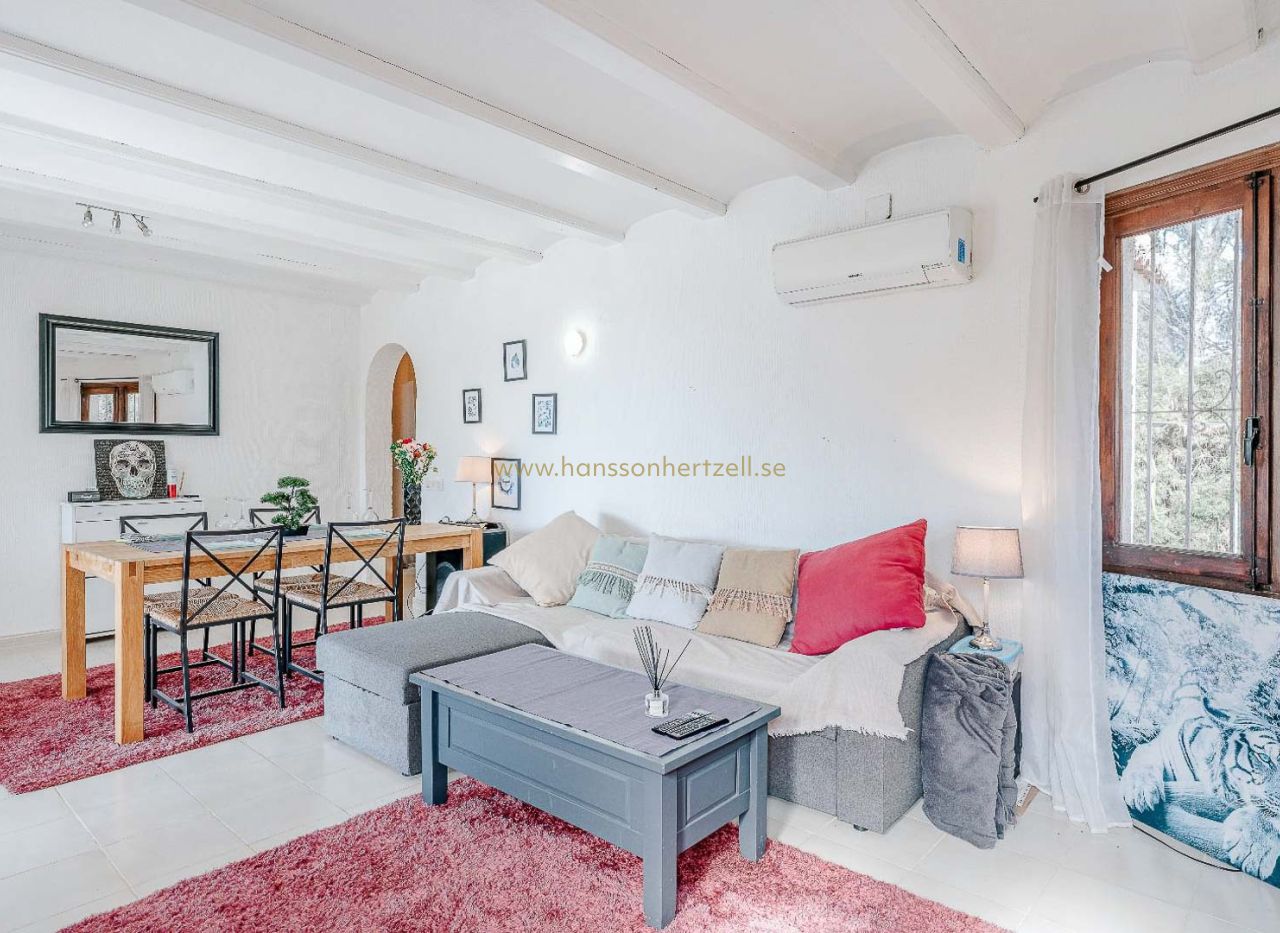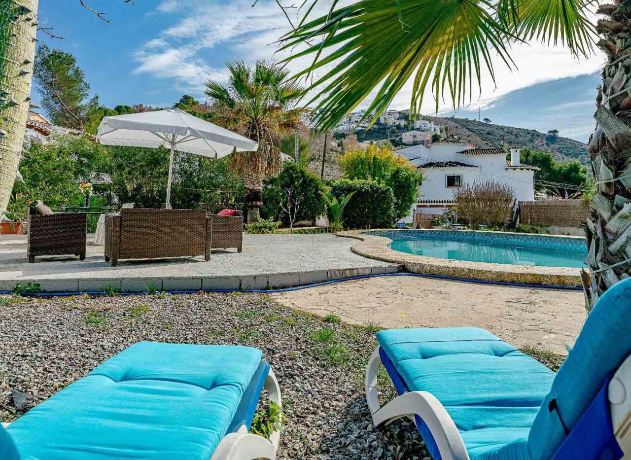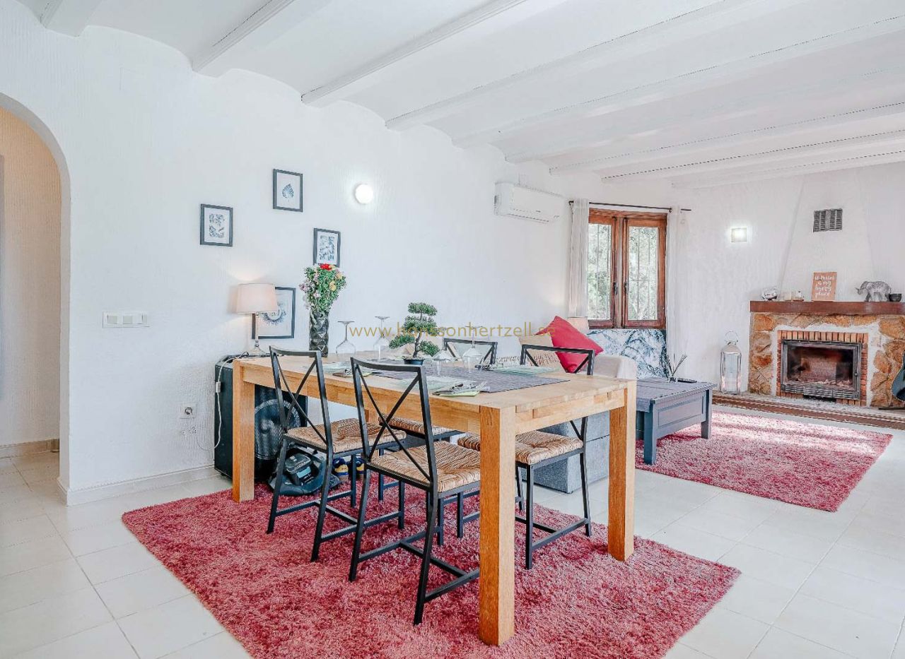 Dans l'un des quartiers les plus exclusifs et paisibles de Moraira, à La Arnella, se trouve cette chaleureuse villa de style méditerranéen, idéale pour ceux qui recherchent calme, intimité et proximité de la mer. La propriété bénéficie d'un emplacement privilégié, avec un accès direct à Cala Llebeig par l'arrière et à seulement trois minutes en voiture de la plage d'El Portet, l'une des plus belles de la Costa Blanca. Construite sur un vaste terrain de 836 m², cette villa de plain-pied offre une atmosphère chaleureuse et fonctionnelle. Elle comprend deux chambres avec placards intégrés, une salle de bains rénovée et un séjour lumineux donnant sur la terrasse et le jardin. La cuisine fonctionnelle et bien entretenue complète l'intérieur de cette charmante maison. À l'extérieur, vous pourrez profiter d'un magnifique jardin à la végétation méditerranéenne et d'une piscine privée, idéale pour les beaux jours. Son orientation sud garantit une lumière naturelle tout au long de la journée, créant un cadre idéal pour vivre toute l'année et passer des vacances inoubliables. La propriété dispose notamment de la climatisation, du chauffage individuel, d'un débarras et d'une place de parking. En bon état, cette maison constitue également un excellent investissement locatif de vacances grâce à son emplacement privilégié entre mer et montagne. Ne manquez pas cette opportunité de vivre ou d'investir dans l'un des endroits les plus prisés de la Marina Alta.