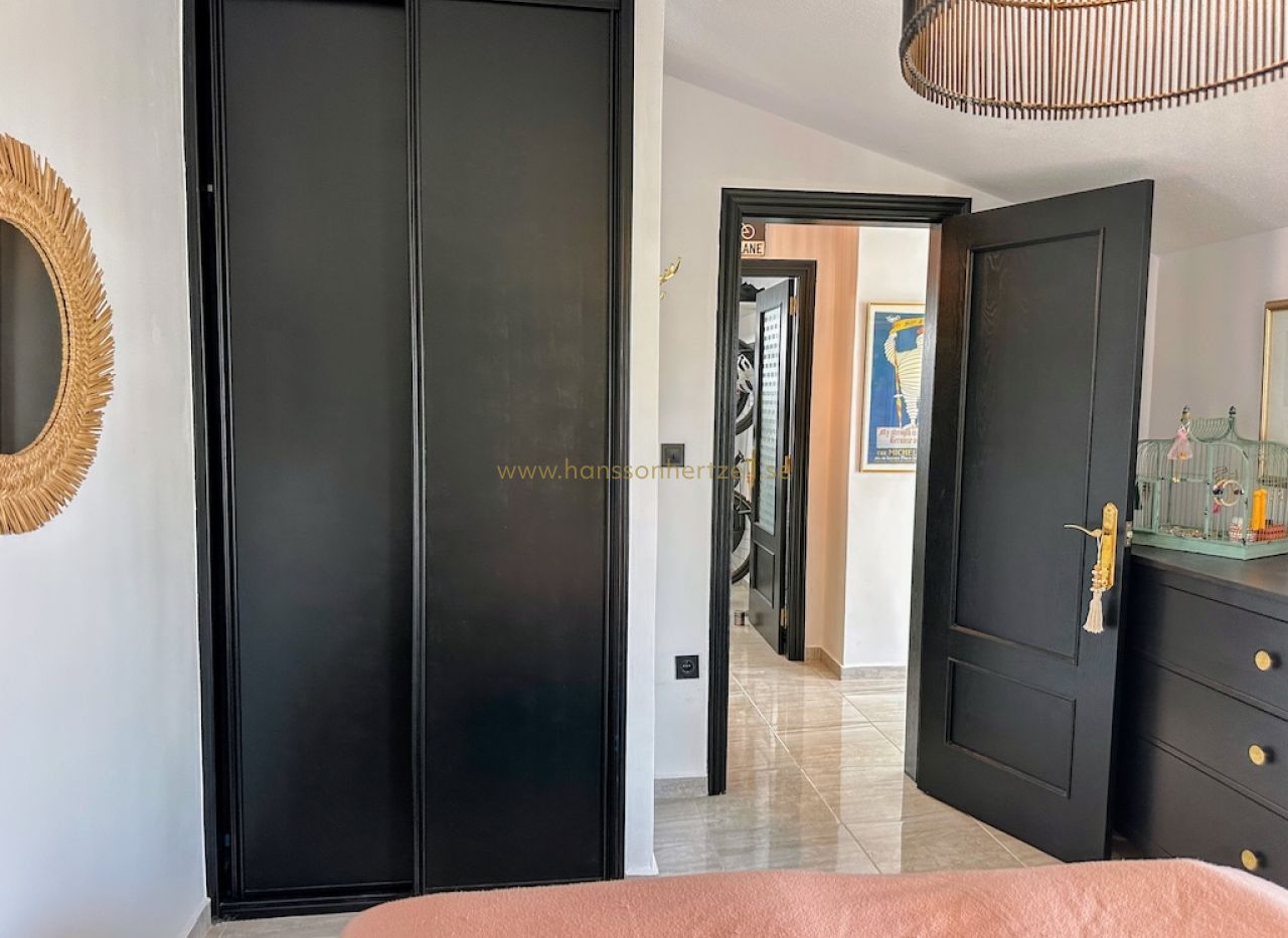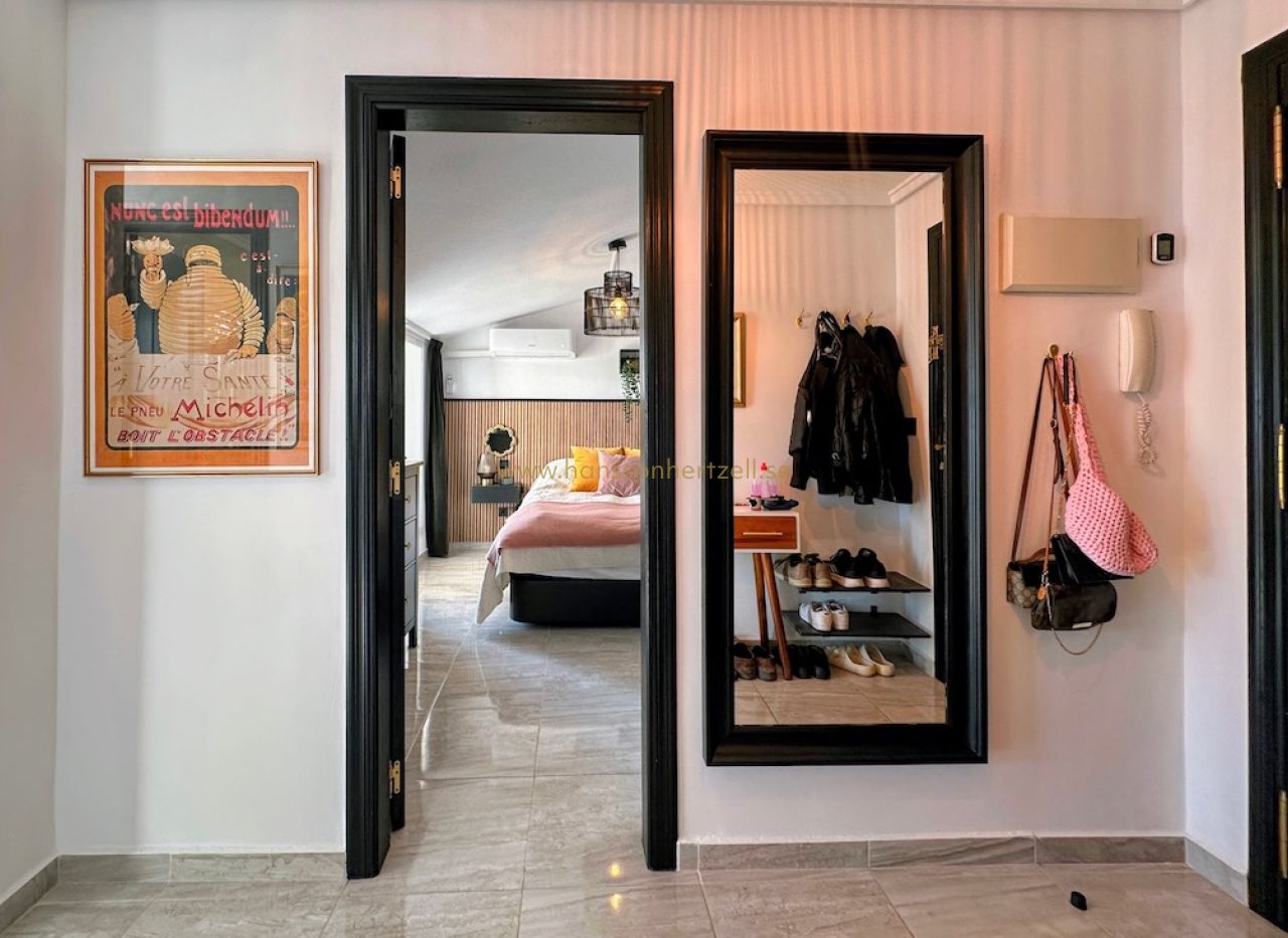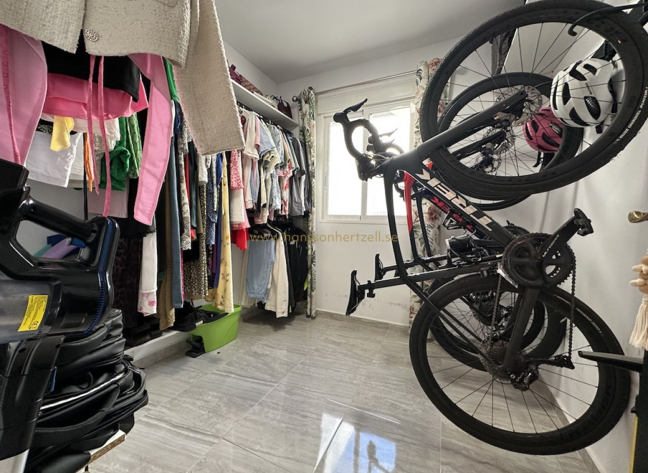 Les deux terrasses constituent un atout majeur. La grande terrasse relie les espaces aménagés et offre un généreux espace extérieur pour profiter du climat méditerranéen. La plus petite terrasse, côté salon, est un coin calme pour se détendre. La Playa de la Cura est à quelques pas seulement — moins de deux minutes à pied. Contactez Hansson & Hertzell dès aujourd'hui pour organiser une visite privée.