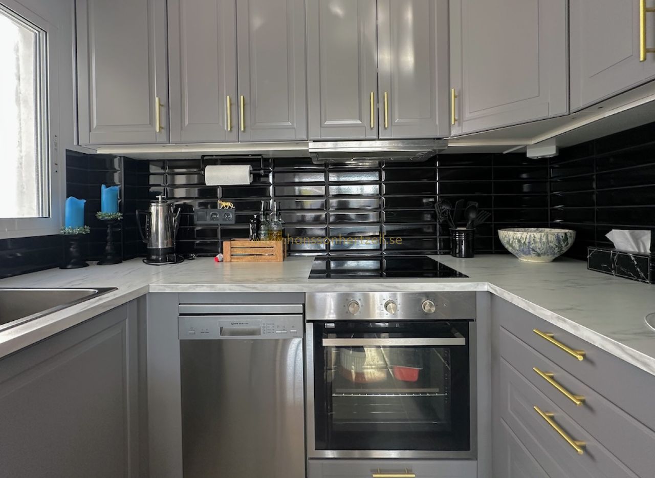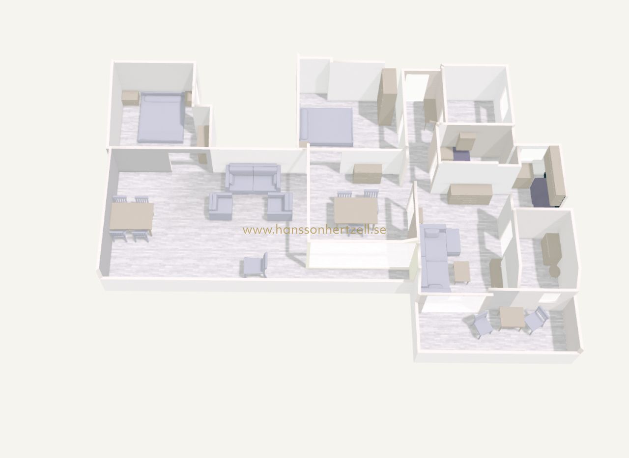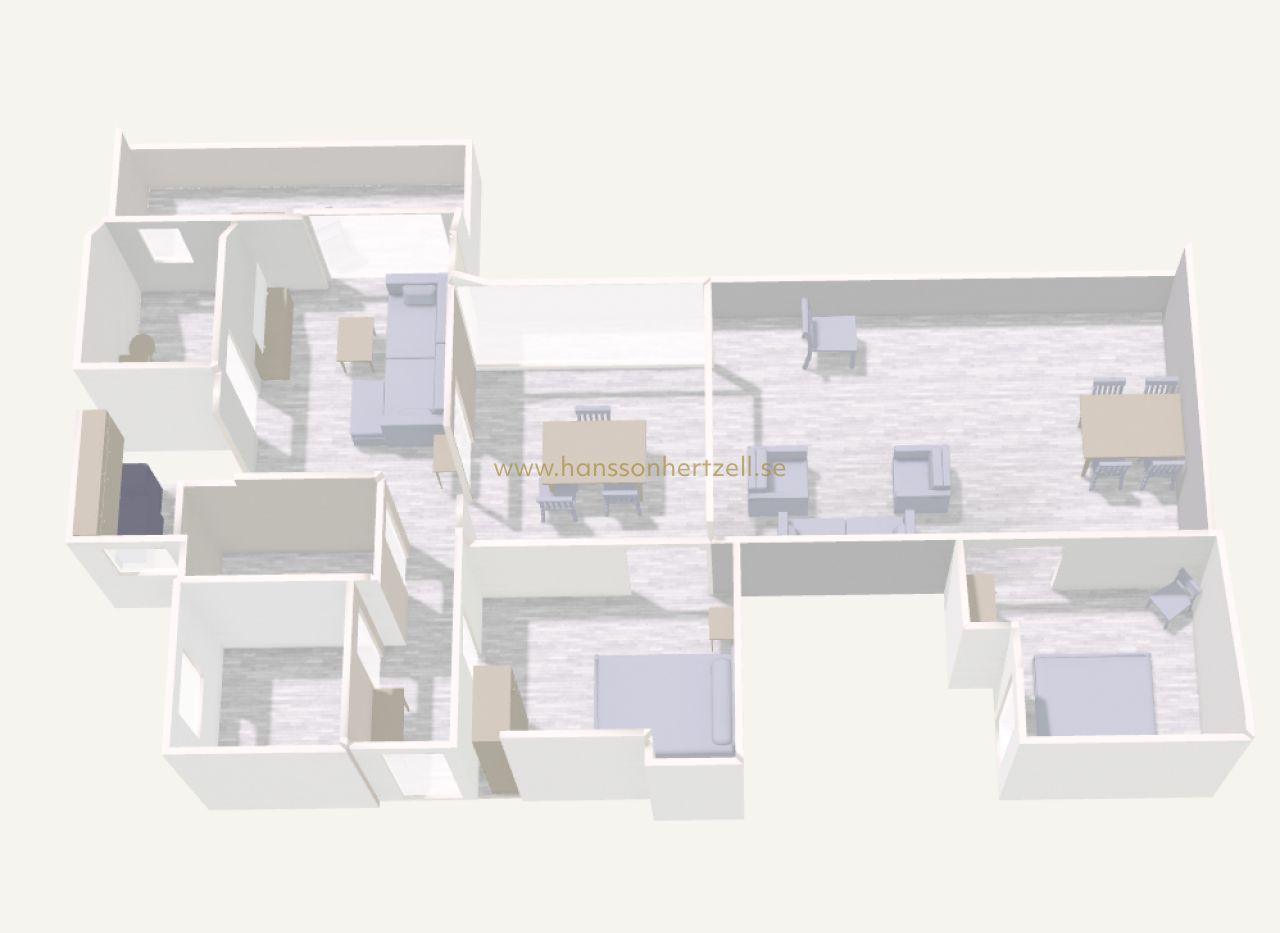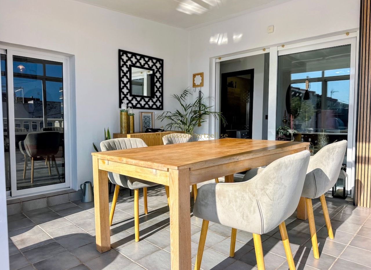 Les deux terrasses constituent un atout majeur. La grande terrasse relie les espaces aménagés et offre un généreux espace extérieur pour profiter du climat méditerranéen. La plus petite terrasse, côté salon, est un coin calme pour se détendre. La Playa de la Cura est à quelques pas seulement — moins de deux minutes à pied. Contactez Hansson & Hertzell dès aujourd'hui pour organiser une visite privée.