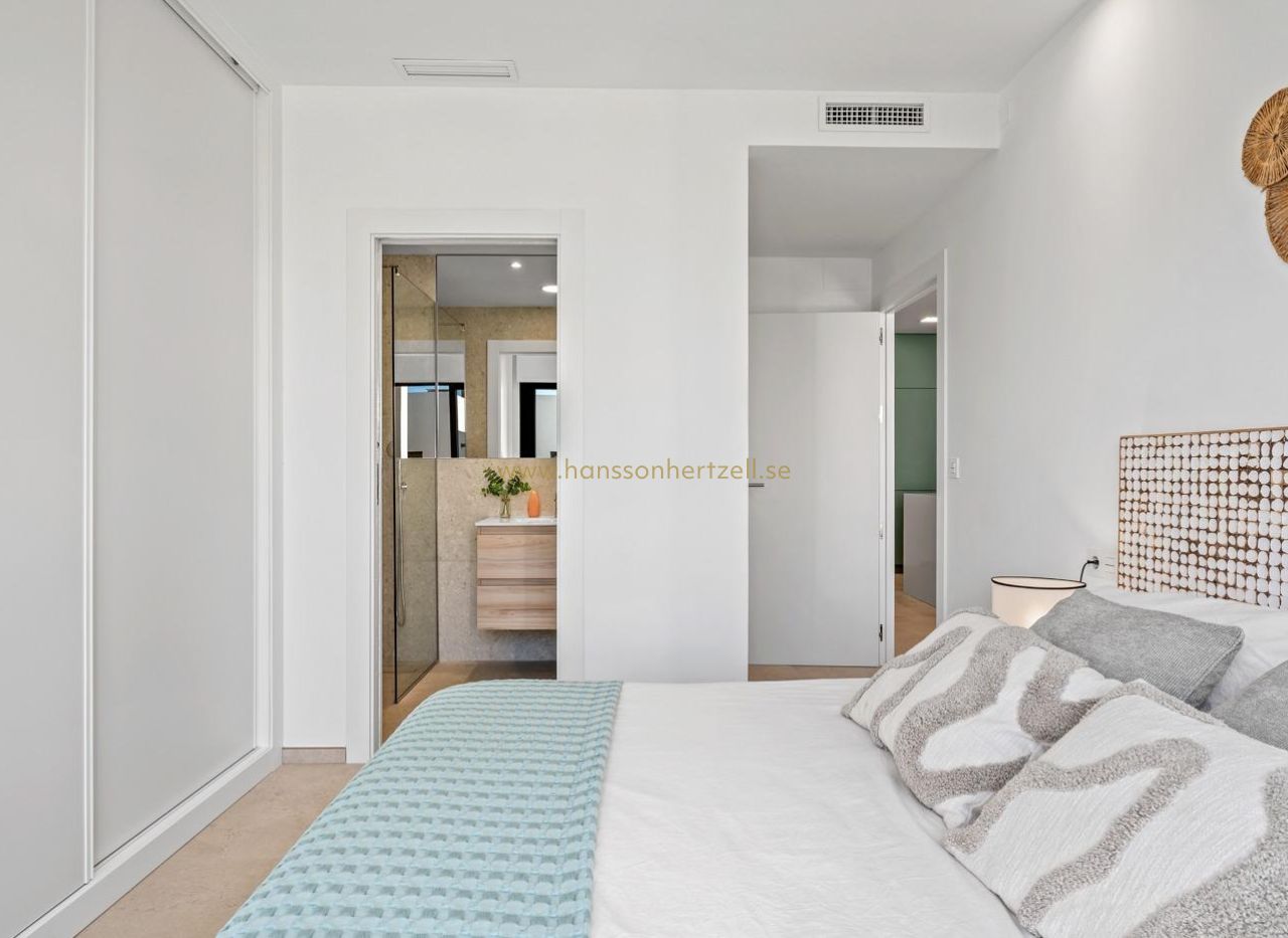 Nieuwbouw wooncomplex in Los Alcazares Los Alcázares is een idyllische locatie voor wie wil investeren in een nieuwe woning aan de Costa Cálida. Dit gebied ligt op slechts 25 minuten van de luchthaven van Murcia en ongeveer 55 minuten van de luchthaven van Alicante en is via de snelweg goed verbonden met grote steden als Cartagena, Murcia en Alicante, maar ook met andere prachtige stranden langs de Costa Cálida en de Costa Blanca. De nieuwbouw bestaat uit 16 moderne 2- en 3-slaapkamerappartementen en 6 exclusieve villa's met 3 slaapkamers. Deze woningen combineren modern design met kwaliteit en functionaliteit, en zijn geschikt voor verschillende levensstijlen. Bewoners kunnen genieten van een prachtig uitzicht op zowel de golfbaan als het pittoreske Mar Menor, wat de algehele woonervaring verbetert. Deze locatie ligt direct aan de eerste lijn van de prestigieuze La Serena golfbaan, bekend om de met elkaar verweven meren en weelderige vegetatie, en is een paradijs voor golfers. De baan heeft waterhindernissen op 16 van de 18 holes en biedt unieke uitdagingen en strategisch spel voor alle niveaus. Bovendien biedt het terrein directe toegang te voet tot het stadscentrum, zodat bewoners de rustige schoonheid van het gebied kunnen ervaren en tegelijkertijd toegang hebben tot plaatselijke voorzieningen en diensten. De Mar Menor, de grootste zoutwaterlagune van Europa, is een van de belangrijkste attracties van de regio, met een oppervlakte van 170 km² en vijf charmante eilanden. Het warme, kalme water en de zachte golven maken het een ideale bestemming om te zwemmen en een verscheidenheid aan watersporten te beoefenen, aantrekkelijk voor zowel natuurliefhebbers als avonturiers. Dit exclusieve wooncomplex in Los Alcázares is niet zomaar een huis, maar een keuze voor een levensstijl, waarbij luxe wonen wordt gecombineerd met de natuurlijke schoonheid van de Costa Cálida. Of je nu een fervent golfer bent, een watersportliefhebber of gewoon op zoek naar een sereen toevluchtsoord aan de kust, deze locatie biedt een unieke kans om te genieten van het beste van het mediterrane leven.