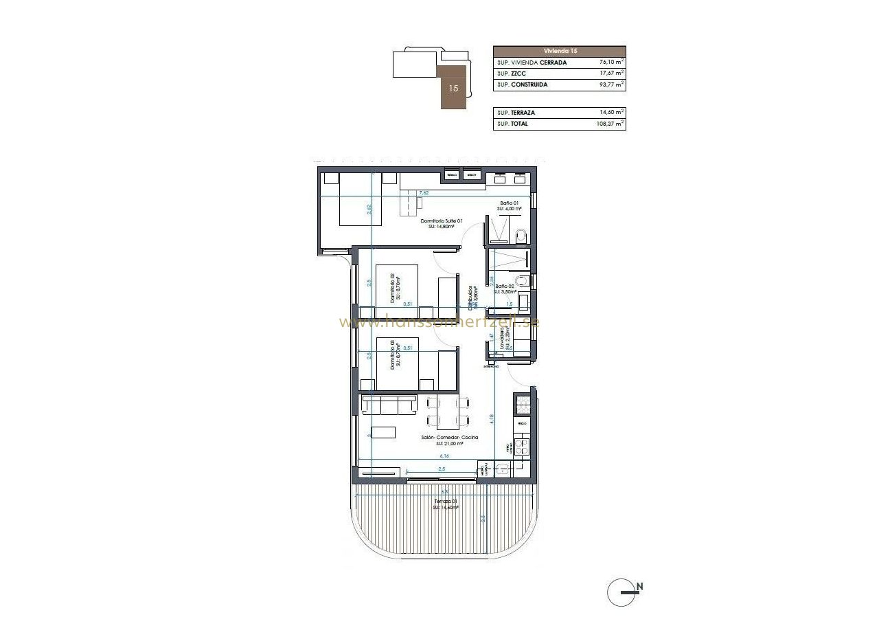 Nieuwbouwappartementen in Guardamar del Segura – Modern wonen op slechts 1,4 km van het strand Ontdek een nieuw woonproject in Guardamar del Segura, Alicante, met slechts 19 exclusieve, moderne woningen die zijn ontworpen voor comfortabel, eigentijds wonen aan de Costa Blanca. Dit project is ideaal gelegen op slechts 1,4 km van het strand en op korte loopafstand van het stadscentrum en combineert stijl, functionaliteit en een uitstekende ligging aan de kust. Exclusief woonproject met beperkte beschikbaarheid Dit boetiekproject bestaat uit appartementen met 2 en 3 slaapkamers met verschillende indelingen om aan verschillende behoeften te voldoen: Appartementen op de begane grond met ruime privéterrassen Appartementen op de middelste verdiepingen met royale balkons of open terrassen. Een spectaculair penthouse met een privé-solarium en zwembad Elke woning heeft elegante, gebogen architecturale lijnen, glazen balustrades en moderne afwerkingen - ideaal voor zowel permanente bewoning als een luxe vakantieverblijf. Hoogwaardige afwerking en energiezuinige voorzieningen Ontworpen voor comfort en duurzaamheid, omvat elke woning: Versterkte voordeur voor extra veiligheid Volledig ingerichte keuken met inbouwapparatuur Energiezuinig aerothermisch systeem voor warm water Privé parkeerplaats inbegrepen in de prijs Het gebouw beschikt ook over een gemeenschappelijk zwembad en aangelegde tuinen, perfect om te genieten van het zonnige mediterrane klimaat. Toplocatie in Guardamar del Segura Dit project ligt in een goed verbonden en levendig deel van Guardamar en biedt gemakkelijke toegang tot de natuur, stranden en essentiële voorzieningen. Bewoners genieten van de nabijheid van supermarkten, restaurants, medische centra, parken en het beroemde dennenbos en de duinen van de stad. Belangrijkste afstanden: Centrum van Guardamar – 1 km Dichtstbijzijnde strand – 1,4 km Jachthaven – 2 km Reina Sofía Park – 1,5 km La Marquesa Golf (Ciudad Quesada) – 9 km Winkelcentrum Habaneras (Torrevieja) – 13 km Luchthaven Alicante-Elche – 33 km Het openbaar vervoer omvat directe buslijnen naar Alicante en Torrevieja, waardoor u ook zonder auto gemakkelijk overal kunt komen. Verzeker uw appartement aan de Costa Blanca Of u nu op zoek bent naar een permanente woning, een vakantiehuis of een slimme investering, dit nieuwe project in Guardamar del Segura is de perfecte keuze. Neem vandaag nog contact met ons op voor meer informatie of reserveer uw nieuwe huis aan zee.