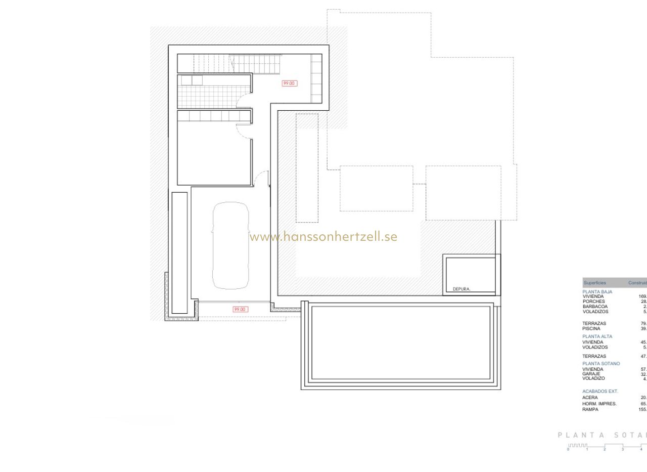 Gelegen in de rustige omgeving van San Jaime in Benissa, ligt dit prachtige project: een combinatie van luxe met een adembenemend uitzicht op zee. Deze woning is gelegen in een rustige doodlopende straat waardoor bewoners kunnen genieten van hun privacy te midden van een idyllische omgeving. De charismatische omgeving biedt niet alleen een mooi uitzicht, maar ook de nabijheid van essentiële voorzieningen en recreatiemogelijkheden. De gerenommeerde golfbaan San Jaime ligt op een steenworp afstand, perfect voor liefhebbers van deze sport, terwijl de bekende supermarkt Pepe La Sal u voorziet in uw dagelijkse behoeften, zodat het dagelijkse gemak nooit ver weg is. De villa bestaat uit drie zorgvuldig ontworpen verdiepingen, waarbij elke verdieping functionaliteit en esthetische aantrekkingskracht op harmonieuze wijze combineert: Entreeverdieping: Bij binnenkomst wordt u verwelkomd door een gedeelte met de garage, wasruimte en technische ruimte. Deze ruimte is zorgvuldig ontworpen en zorgt ervoor dat praktische aspecten van het wonen naadloos zijn geïntegreerd zonder afbreuk te doen aan de stijl. Hoofdverdieping: Als u verder loopt naar de belangrijkste leefruimte, wordt u omringd door elegantie en comfort. De open woonkamer, eetkamer en keuken stralen een gastvrije sfeer uit, ideaal voor familiebijeenkomsten of het ontvangen van gasten. Op deze verdieping bevinden zich twee royale slaapkamers met eigen badkamer. Buitenruimtes: Buiten nodigen het terras en het zwembad uit tot ontspanning en recreatie in uw eigen buitenoase. De buitenruimtes zijn zo ontworpen dat ze een naadloze integratie tussen binnen- en buitenleven creëren, met ruimtes om te dineren, te ontspannen en te genieten van het zwoele Spaanse klimaat. Bovenverdieping: De bovenste verdieping is gereserveerd voor de sublieme hoofdslaapkamer, met een eigen badkamer en toegang tot een ruim buitenterras. Deze privé-oase nodigt u uit om te genieten van talrijke zonsop-en ondergangen, en biedt u dagelijks een spektakel van de schoonheid van de natuur vanuit het comfort van uw eigen huis. Deze unieke woning combineert een moderne architecturale filosofie met de tijdloze charme van de omgeving en biedt een ongeëvenaarde woonervaring in San Jaime, Benissa. Deze woning biedt rust, luxe en gemak en is niet zomaar een huis, maar een thuis waar elk detail een statement is van kwaliteit en verfijning.