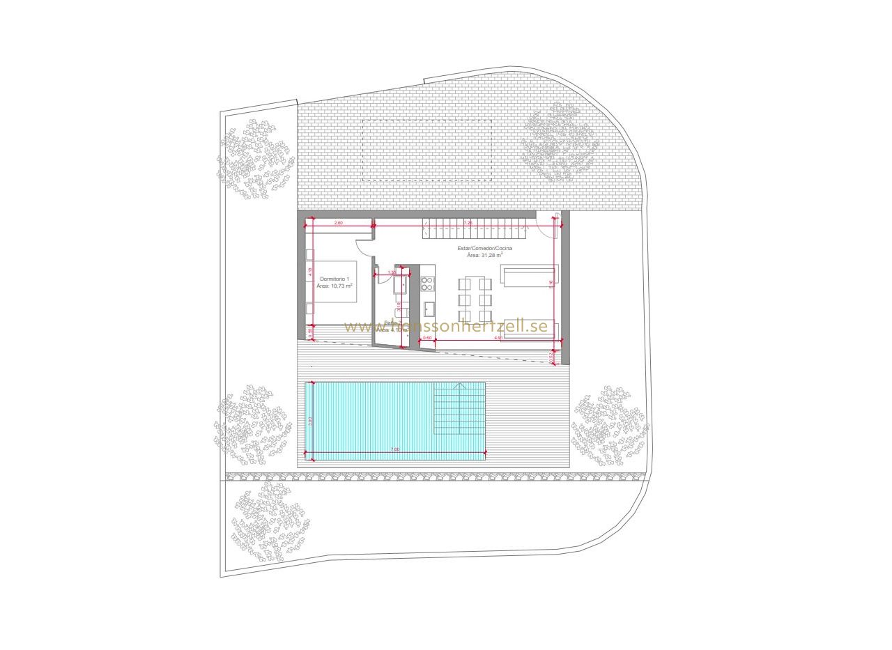 Deze villa wordt gebouwd op een grondstuk in de rustige wijk La Solana Gardens op wandelafstand van het pittoreske dorpje Alcalali. Alcalali is een klein, authentiek dorpje gelegen in de zonnige vallei genaamd Valle de Pop omringd door majestueuze bergketens, maar toch kort bij de kust. De villa is verdeeld over drie verdiepen. De benedenverdieping bestaat uit een woo-eetkamer met een open keuken, een tweepersoonsslaapkamer en een badkamer. De bovenverdieping bestaat uit twee tweepersoonsslaapkamers met een gedeelde badkamer. In de semi-kelderverdieping bevindt zich een garage van 80 m2.In de prijs is ook een zwembad en een terras van 30 m2 inbegrepen. Alcalalí heeft een zeer centrale ligging, op 20 minuten bereik je zowel de stranden van Denia als die van Calpe. Ook de leuke kustdorpjes Javea en Moraira zijn op een half uurtje te bereiken. Andere dorpen in de vallei zoals Jalón, Parcent, Lliber zijn op 5 minuten te bereiken. Alcalalí is perfect om te wandelen en te fietsen tussen olijfbomen, sinaasappelbomen, amandelbomen en wijngaarden. Bovendien zijn in de omringende bergketens meerdere prachtige wandelroutes.