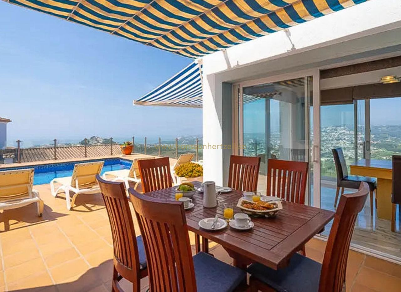 Met een prachtig uitzicht op zee, tussen het eindeloze blauw van de Middellandse Zee en de bergen die haar omarmen, verrijst een villa die luxe, comfort en mediterrane essentie perfect combineert. Vanaf de terrassen strekt het uitzicht zich uit zover het oog reikt: gouden zonsopgangen boven de zee en warme zonsondergangen boven de bergen. Het huis is zo ontworpen dat u van elk moment van de dag kunt genieten. In de winter maakt een gezellige open haard de avonden tot puur comfort; in de zomer houden de airconditioning en de zeebries elke kamer koel en aangenaam. De volledig uitgeruste keuken nodigt u uit om samen te ontbijten op het balkon, waar het landschap uw perfecte metgezel wordt. De binnenruimtes geven toegang tot natuurlijk licht en worden beschermd door een ultramodern beveiligingssysteem. Een dubbele garage en voldoende parkeergelegenheid zorgen voor comfort voor bewoners en bezoekers. De villa beschikt ook over een speciale ruimte voor persoonlijke verzorging: een volledig uitgeruste fitnessruimte, sauna en stoomdouche creëren een waar wellnessparadijs thuis. Buiten is alles ontworpen voor een ontspannen verblijf. Een privézwembad van 35 m² vormt het hart van bijeenkomsten en ontspannende dagen. Ligstoelen, een ruim terras, een buitenbar en een barbecueplek creëren de perfecte setting voor onvergetelijke feesten. De ervaring wordt compleet gemaakt door een privéspa, een buitendouche, een zonnescherm en een fontein die de sfeer sereen maakt. En dit alles in Moraira, een van de best bewaarde geheimen van de Costa Blanca. Een voormalig vissersdorp dat zijn authenticiteit heeft weten te behouden, waar geplaveide straatjes, restaurants aan zee, verborgen baaien met kristalhelder water en de exclusieve jachthaven bezoekers betoveren. Hier stroomt het leven op het ritme van de Middellandse Zee: kalm, helder en vol charme.